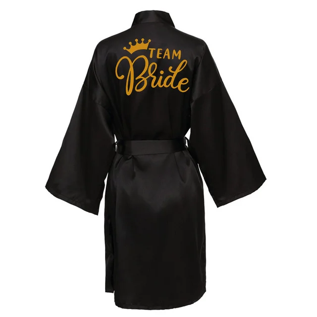 Отзывы о Свадебная вечеринка Команда Невесты халат с черными буквами кимоно атласная