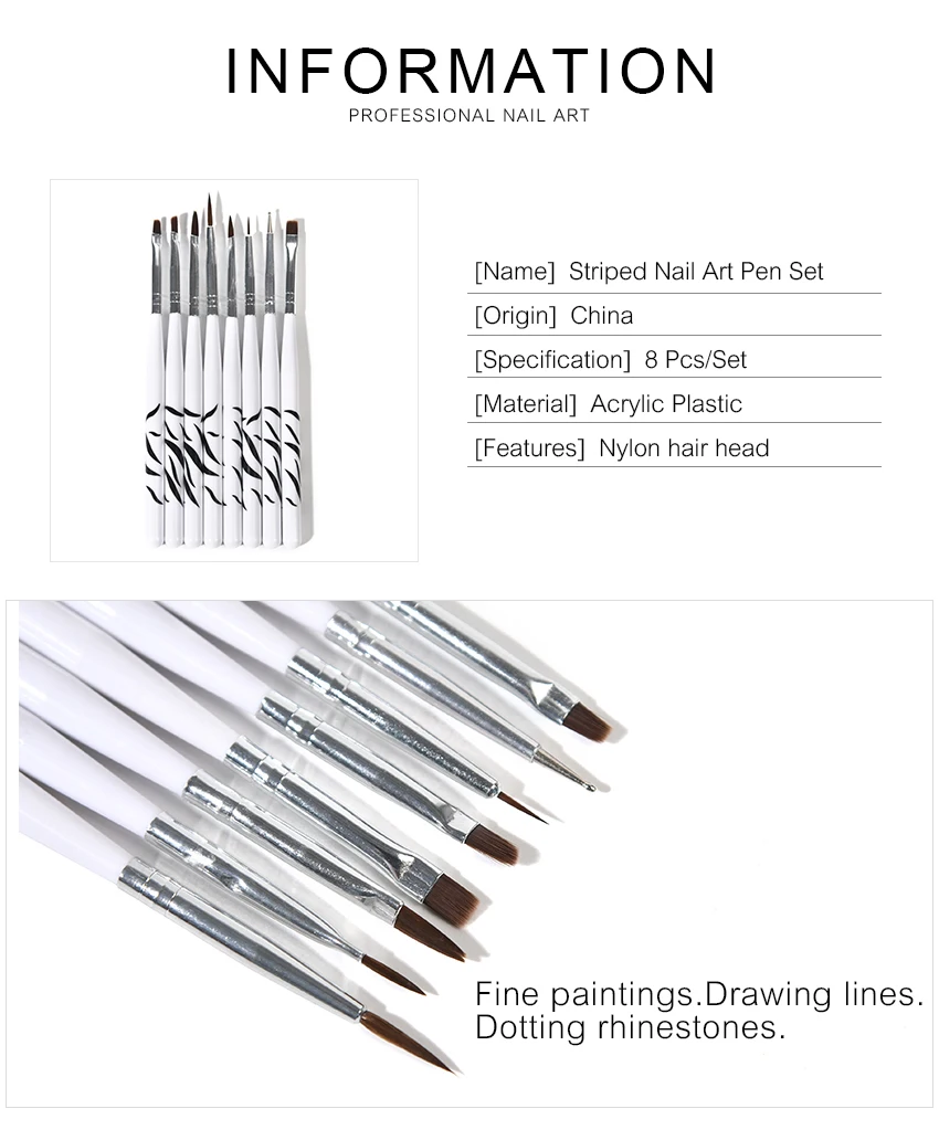 Отзывы о 8 шт./компл. кисть для наращивания акрилового УФ-геля в французскую полоску -