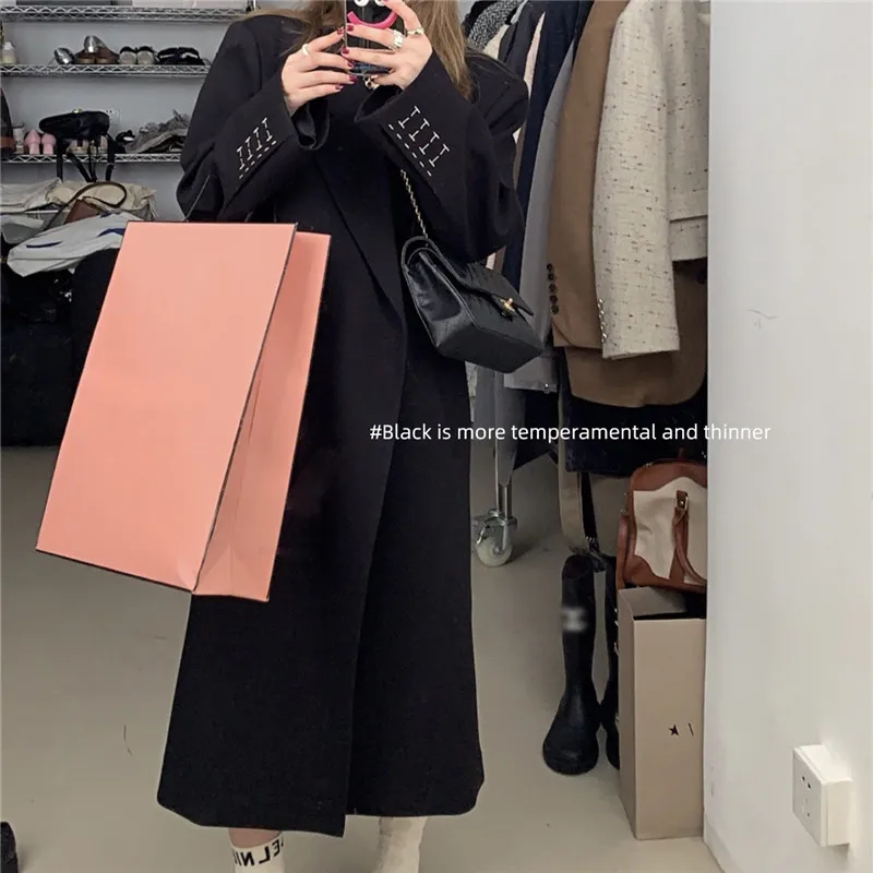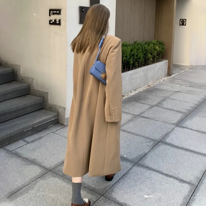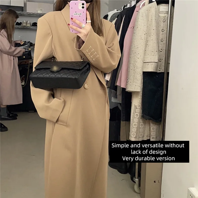 Женское пальто, Повседневная Длинная Верхняя одежда, свободный осенне-зимний модный двубортный Тренч, Женская ветровка