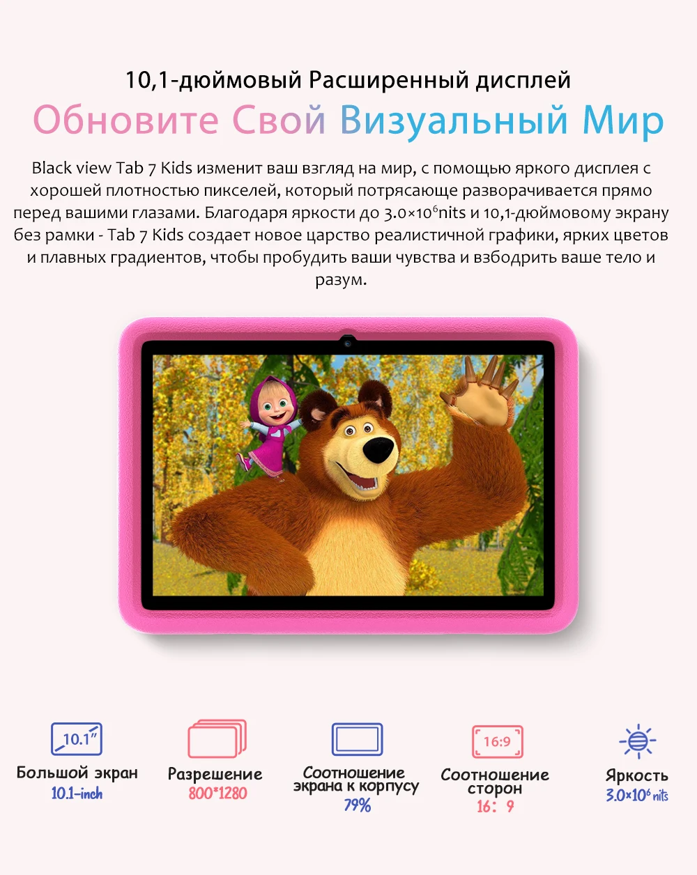 Отзывы о Детский планшет Blackview Tab 7 10 1 дюйма Android 11 3 + 32 ГБ 4 ядра Wi-Fi 6580 мАч - купить по