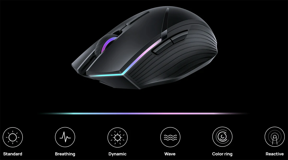 • Во время игры в разные игры вы можете выбрать соответствующий режим освещения по желанию, чтобы красочное освещение мыши дополняло игровую сцену.