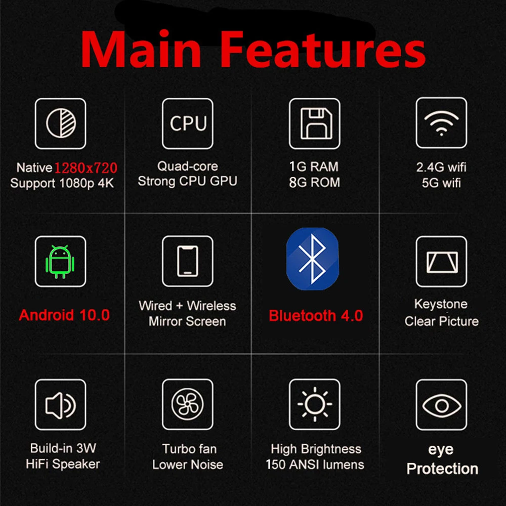 [2,4G & 5G Wifi и Bluetooth 4.2 функции]:Проектор HAMOLB HA1 имеет функцию bluetooth, вы можете подключить ваш идеальный bluetooth динамик по беспроводной сети в любое время. Ультра-Быстрый 5G Wi-Fi позволяет осуществлять Потоковую передачу без задержек для онлайн-игр и бесшовной потоковой передачи видео. Функция обмена беспроводным экраном обеспечивает удобство просмотра всех ваших любимых материалов путем потоковой передачи данных с устройств iOS или Android.