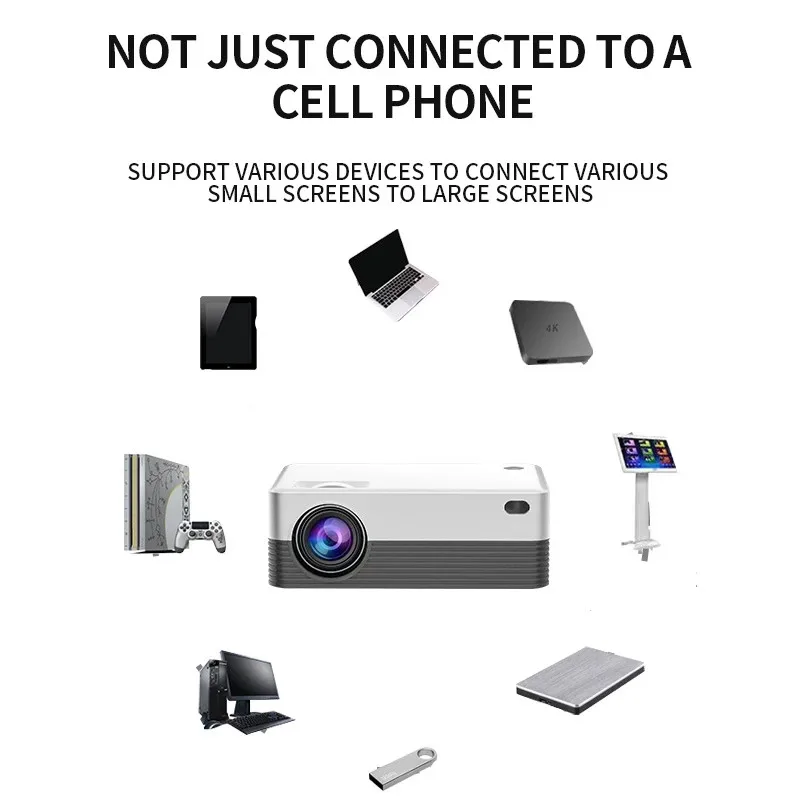[Поддержка мультимедийного подключения]:Проектор HAMOLB HA1 оснащен различными портами, такими как USB / HDMI / AV / SD / Audio. Он может быть легко подключен к вашему смартфону, ТВ-палке/коробке, игровым консолям, ПК, смартфонам, планшетам, ноутбукам, dvd-плееру, tf-карте и USB-палкам.