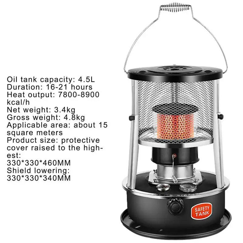 4. Высокая эффективность: уличная керосиновая печь нагреватель отличается высокой эффективностью и энергосбережением. Максимальная теплотворная способность составляет 9000 BTU/ч (эквивалент 3000 Вт), а потребление энергии в час-0,21 л. Сделайте комнату около 15 квадратных метров быстро поднимающейся вверх.