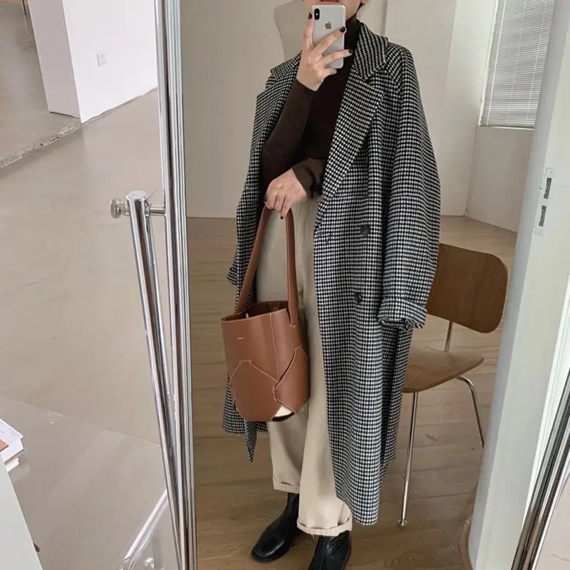 Отзывы о Женское шерстяное пальто в клетку Осеннее зимнее Новое серое Коричневое Пальто