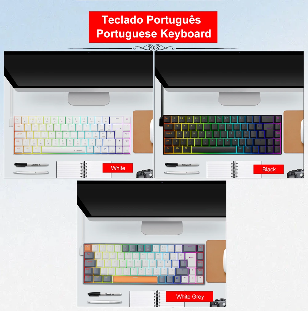 Отзывы о E-YOOSO Z686 RGB USB 60% Мини тонкая Механическая игровая Проводная клавиатура красный