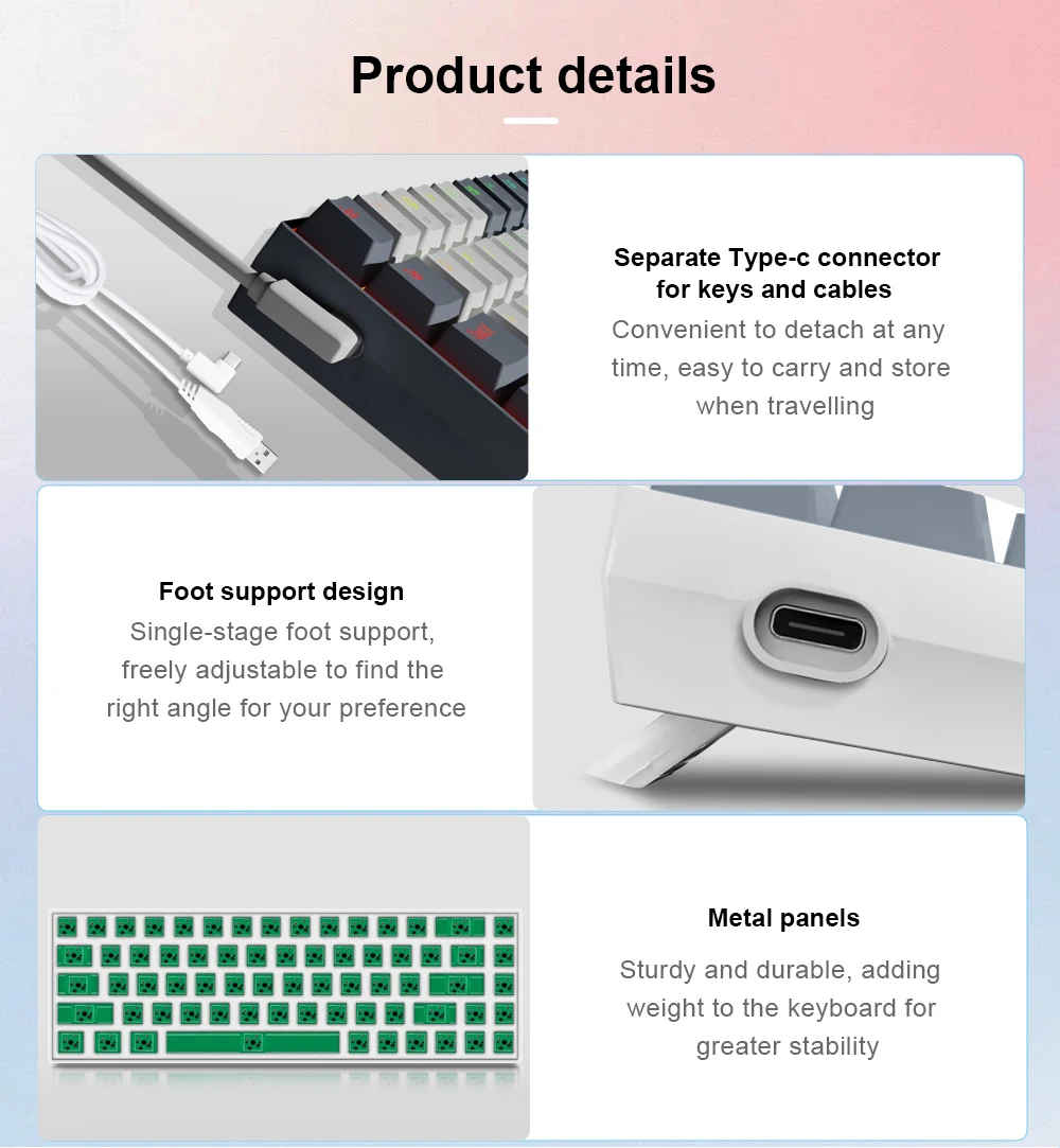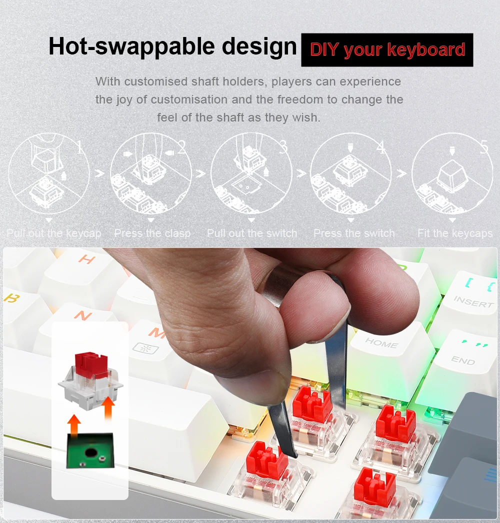 ❤Подключаемый красный переключатель▶Самый тихий механический переключатель, линейная и мягкая клавиша перемещения делает каждый клик легко зарегистрироваться. Сделано для работы с переключателями, рассчитанными на 50 миллионов нажатий клавиш. В посылка есть запасные переключатели и инструменты.