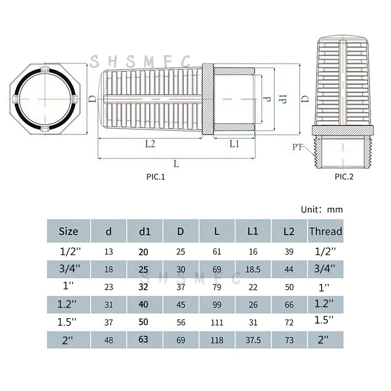 Размеры: 20 мм, 25 мм, 32 мм, 40 мм, 50 мм, 1/2inch 3/4 дюйма) 1 1,2 Дюймов 1,5 дюймов 2 дюйма