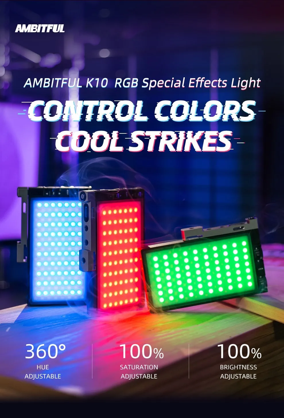 Отзывы о Полноцветный светодиодный светильник AMBITFUL K10 RGB 2500K-8500K с регулируемой яркостью