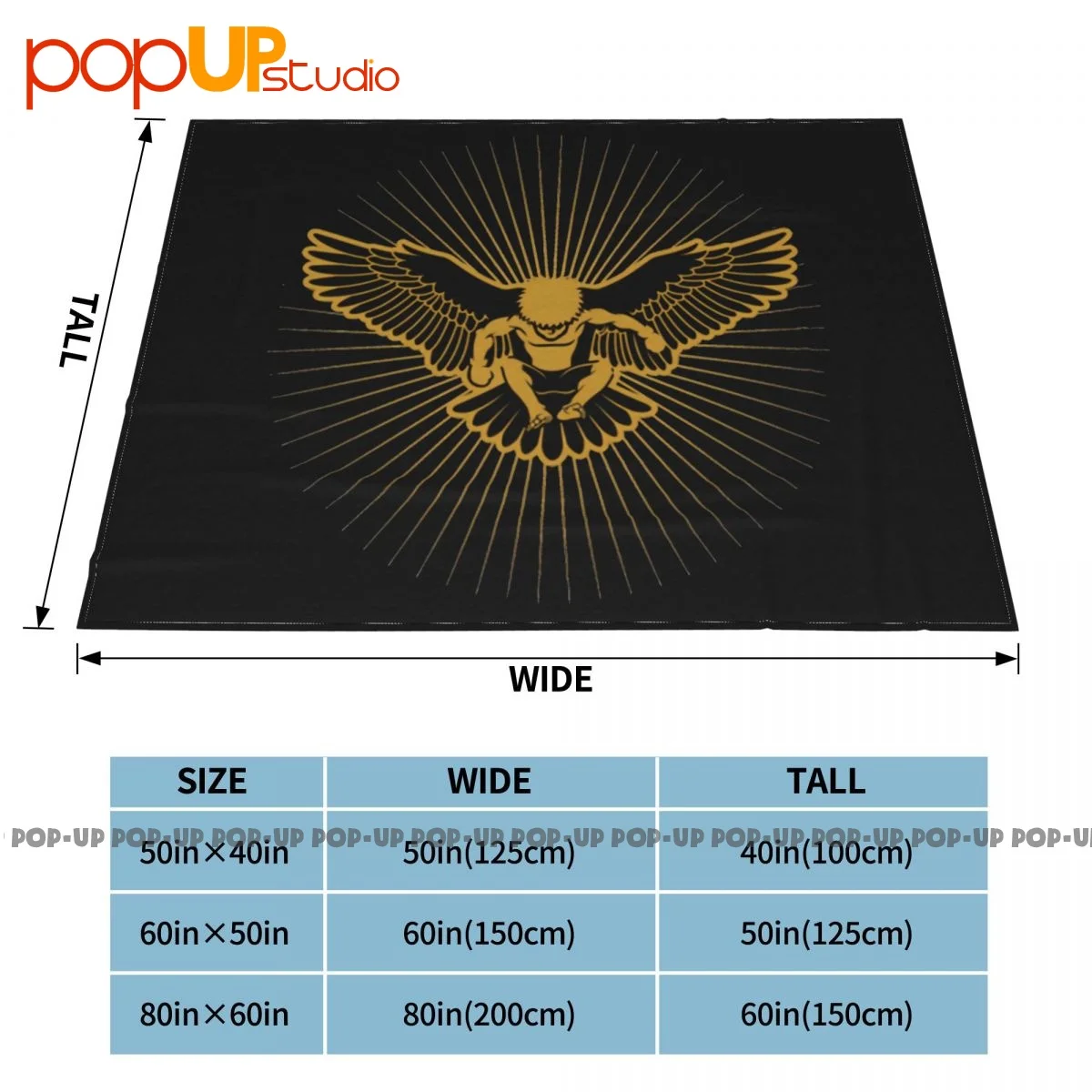 Есть три размера на выбор, 50 "x 40" = 125*100 см, 60 "x 50" = 150*125 см, 80 "x 60" = 200*150 см.