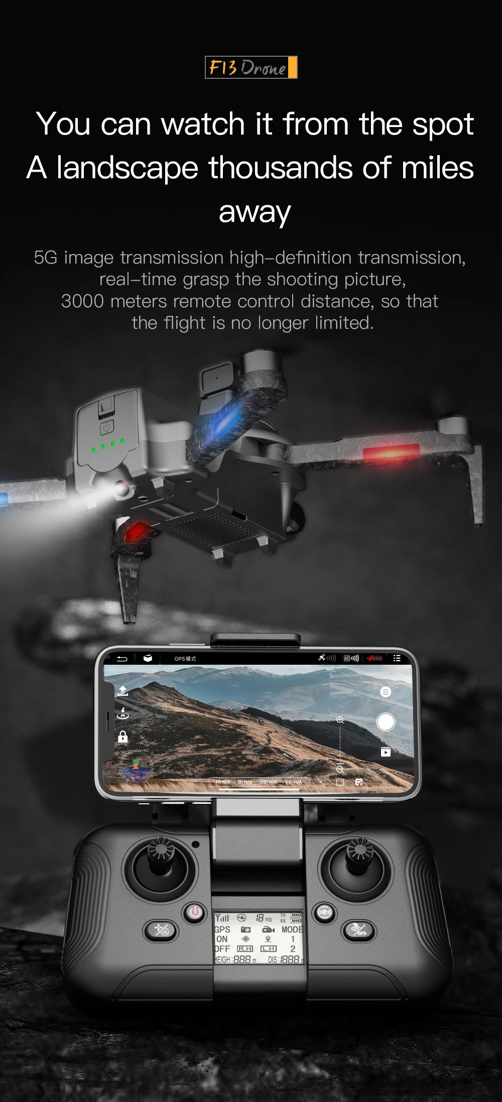 -① GPS smart follow: после того, как самолет подключен к GPS, Откройте функцию приложения follow, и самолет будет следовать за мобильный телефон.
