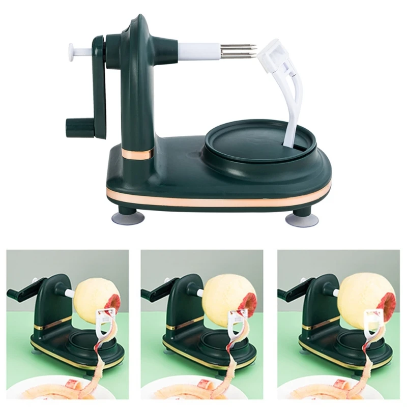 Простота в использовании, закрепите яблоки на лезвия, поверните ручку по часовой стрелке, лезвие автоматически отклеит яблоко. Скорость пилинга быстрая, и пилинг не легко сломать.