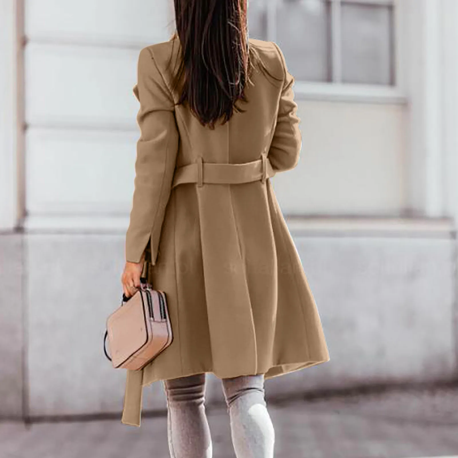 Женское шерстяное пальто с отворотом на осень и зиму, Тренч, длинное пальто, верхняя одеждаПожалуйста, проверьте таблицу размеров перед заказом. Если вы не уверены в размере, пожалуйста, отправьте нам сообщение