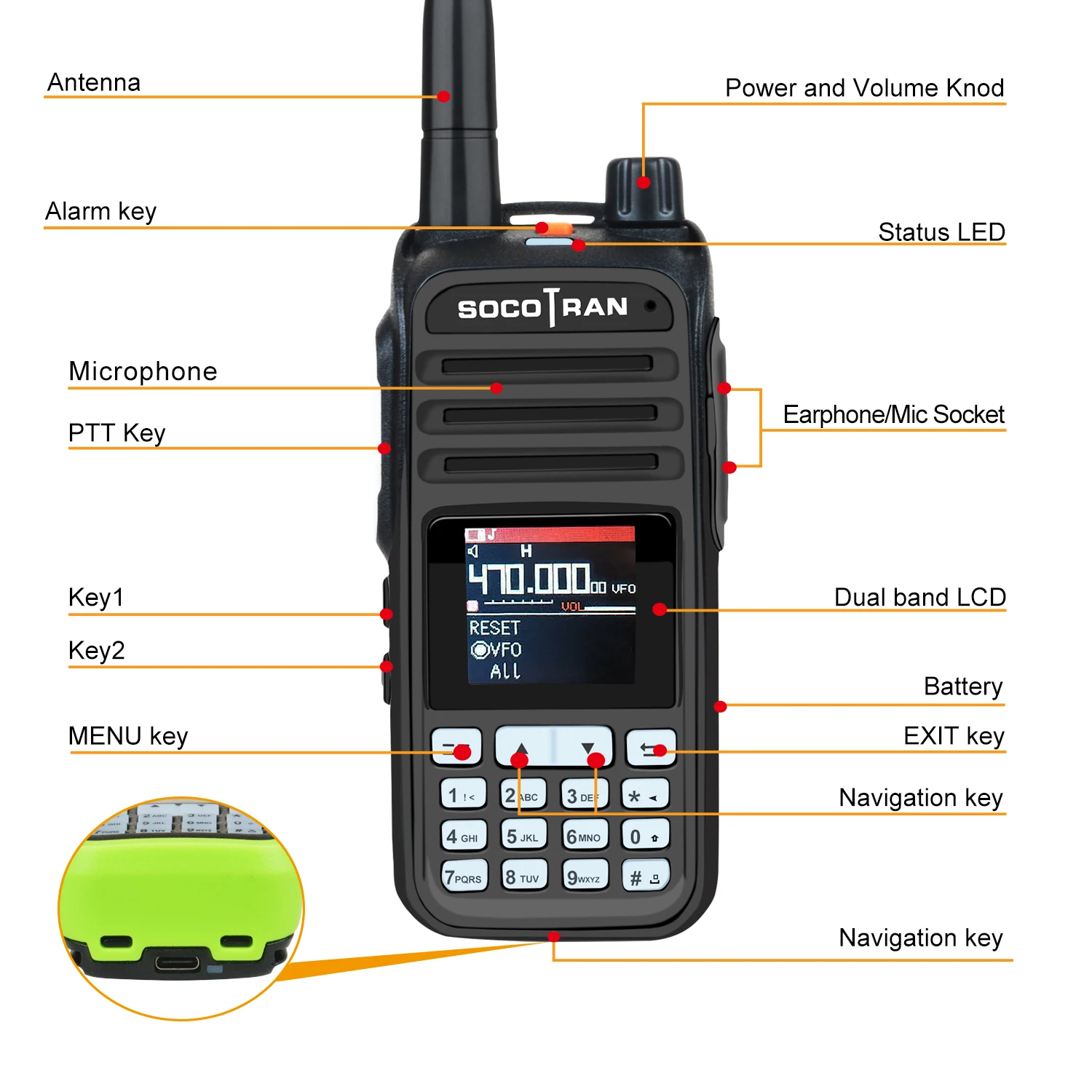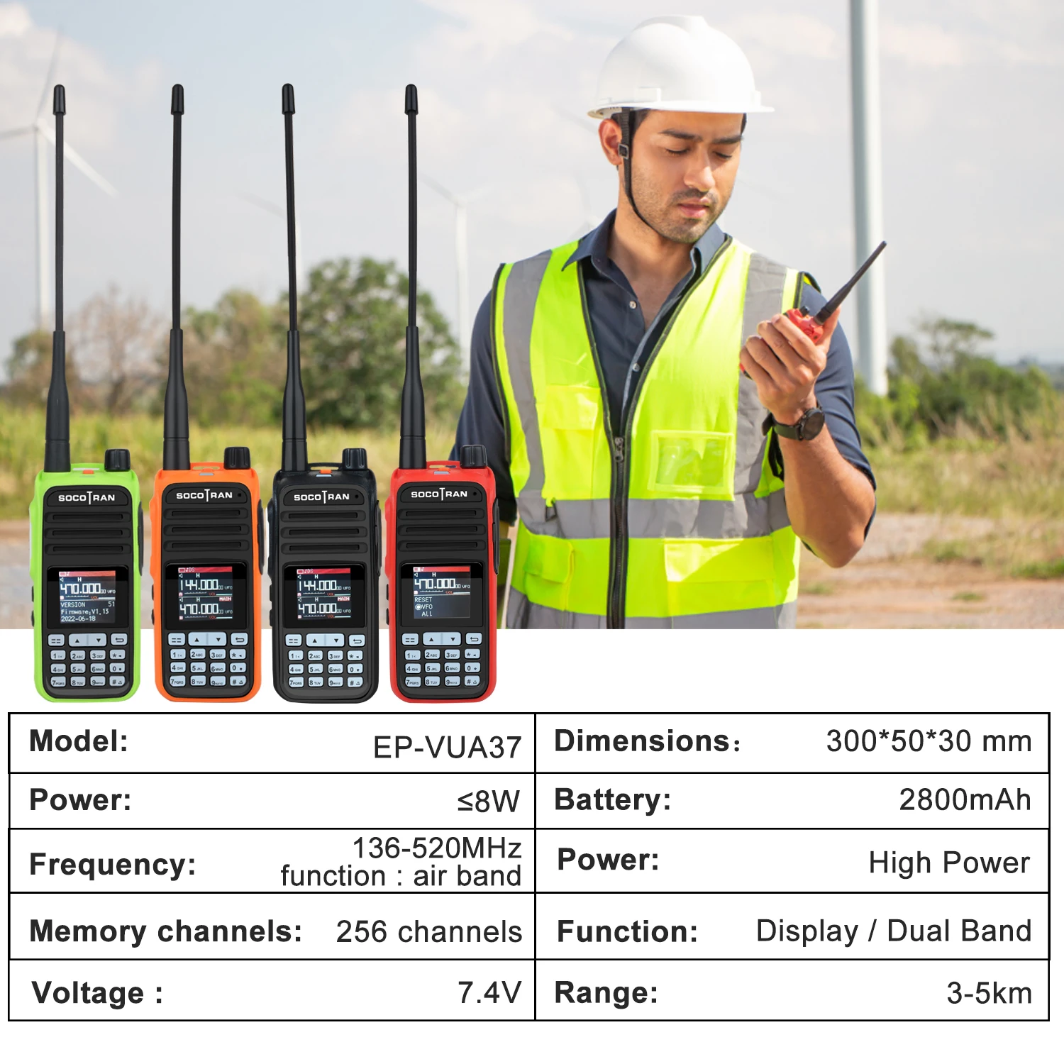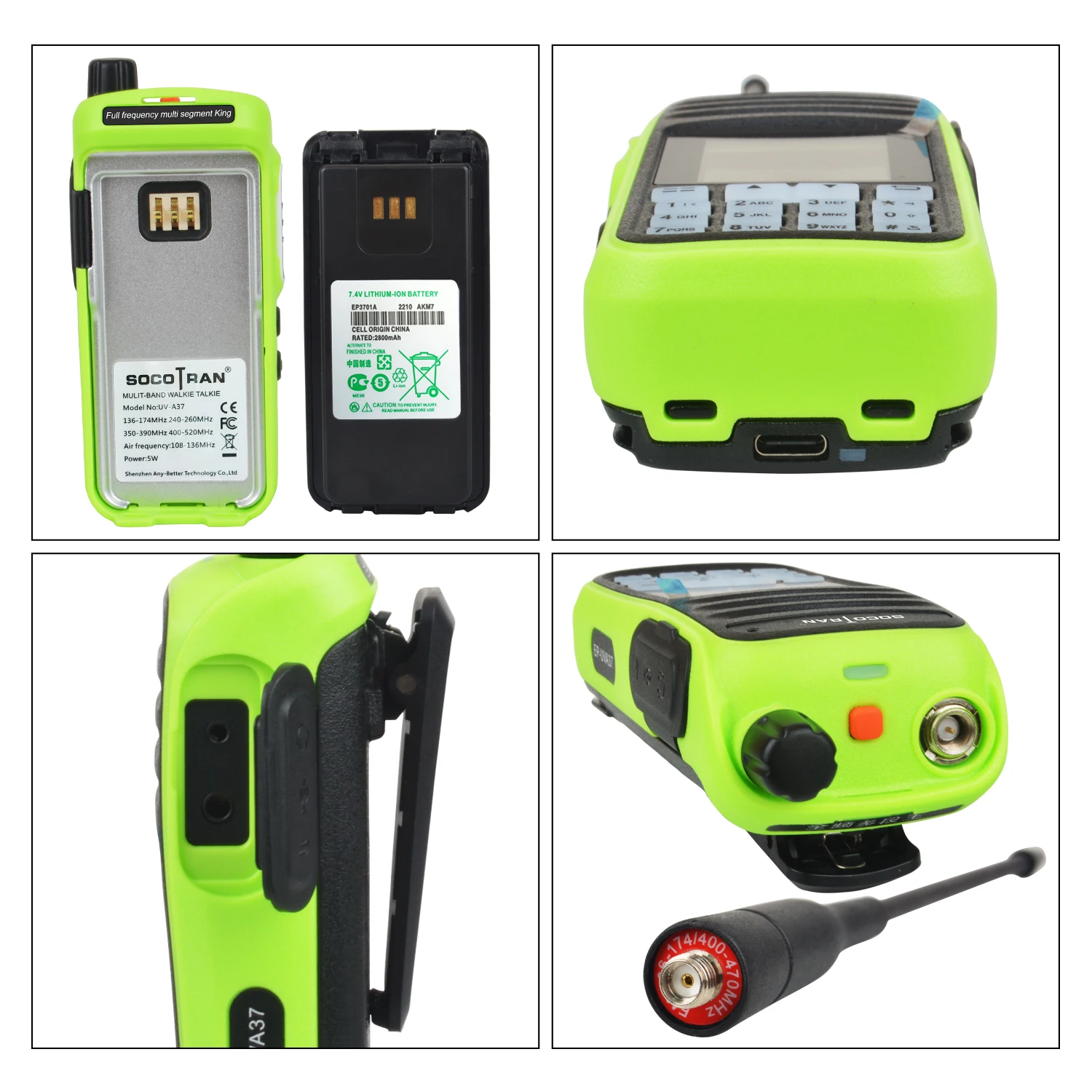 Socotran Walkie Talkie Air Band 5 Вт Seven Bands разноцветный портативный любительский двухсторонний радиоприемник EP-UVA37 Вт/скремблер Беспроводная Частота продублирована и запрограммирована