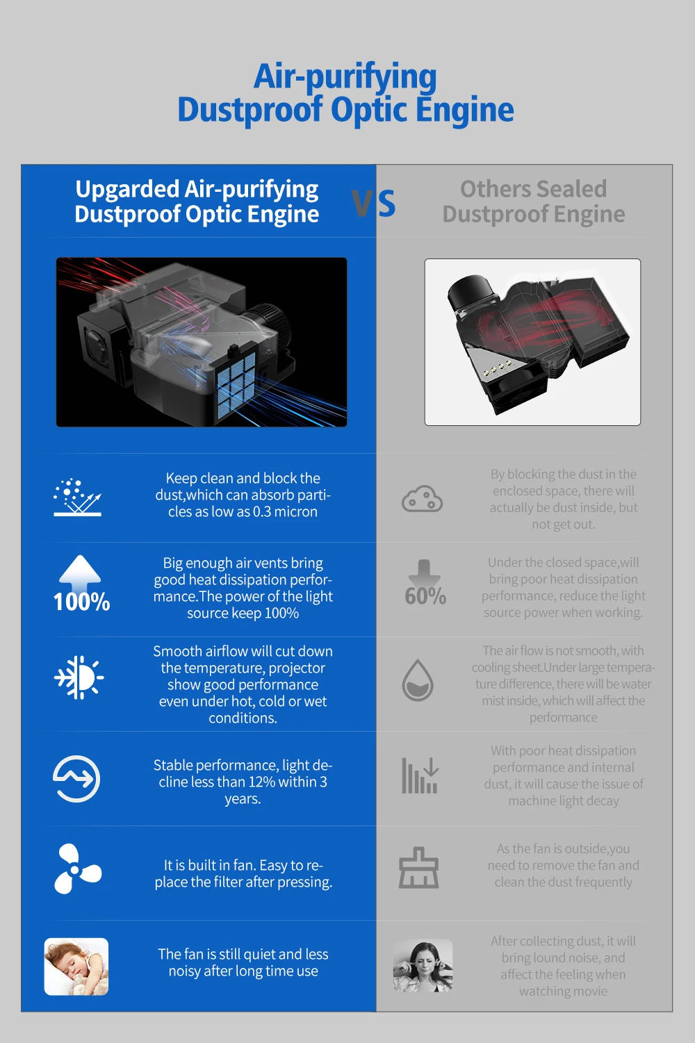 ❤Голографические технологии, защита от пыли, длительный срок службы, меньше шума.