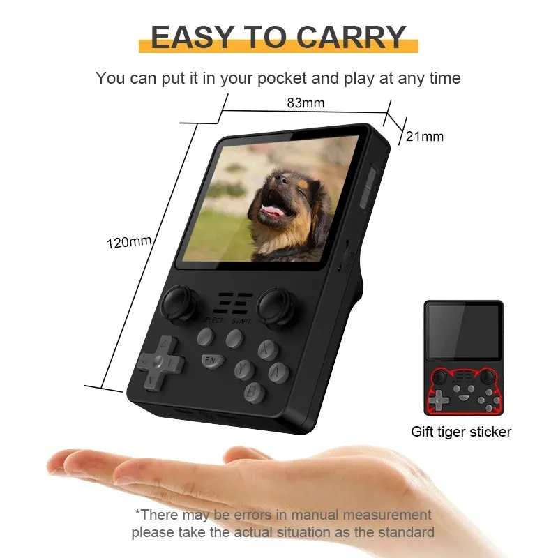 Упаковочный лист:1 * игровая консоль1 * зарядный кабель1 * наклейка1 * игровая карта (опционально)1 * Руководство пользователя* Четкий яркий экран IPS:3,5-дюймовый дисплей и разрешение 640x480,Вы можете увидеть больше деталей и красивых сцен в игре.