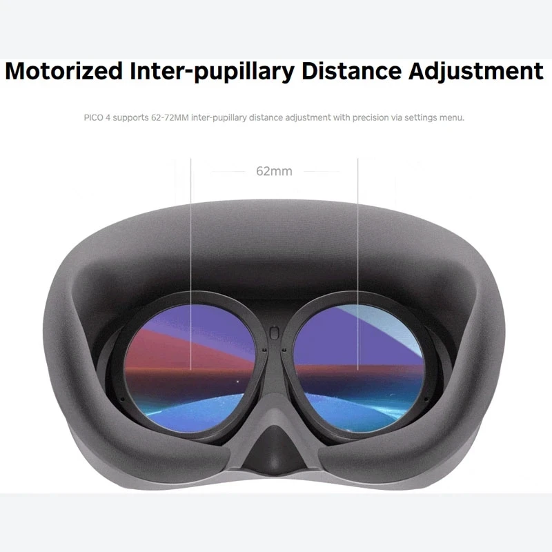 PICO 4 поддерживает регулировку расстояния 62-72 мм с точностью через меню настроек.
