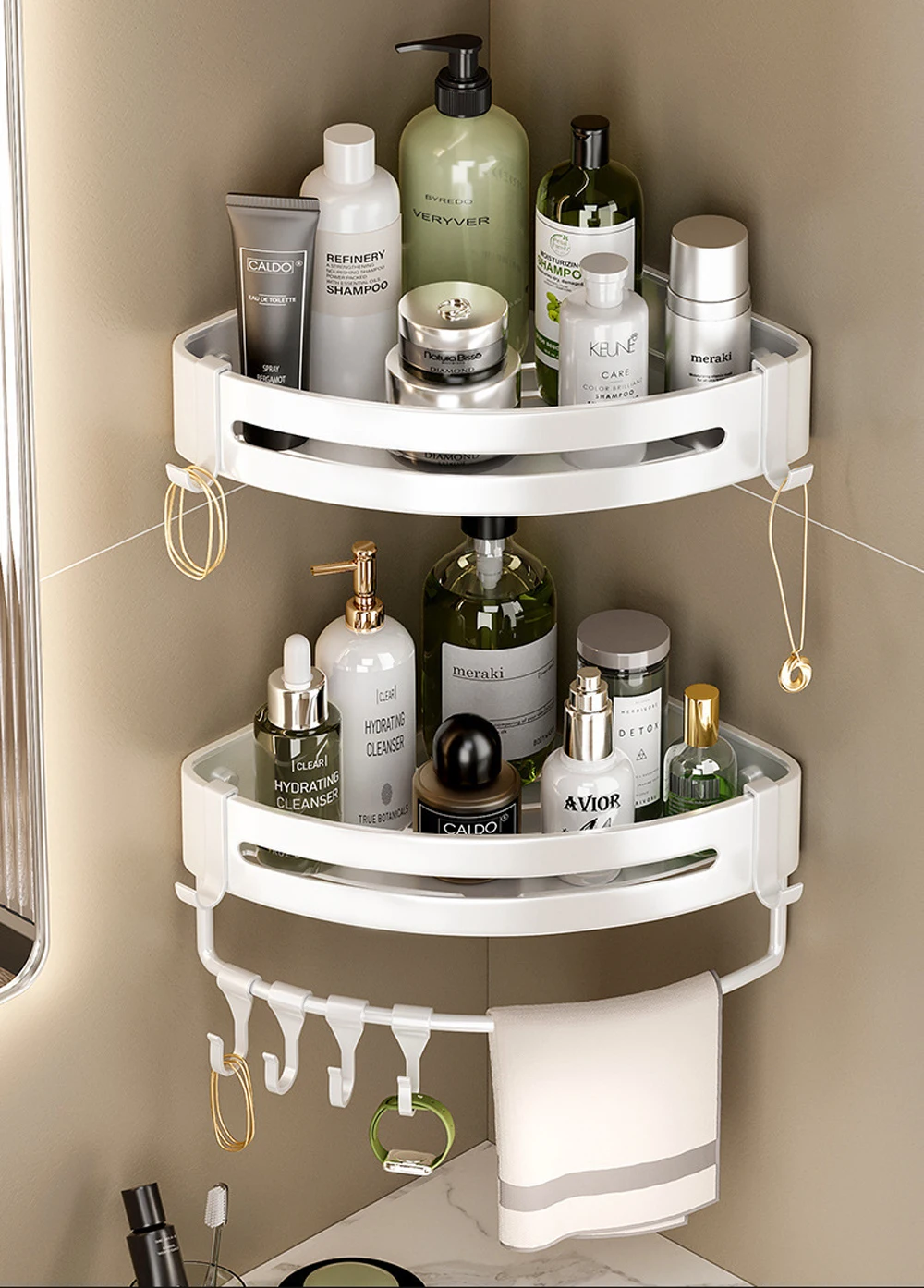Отзывы о Стеллаж для хранения белых полотенец душа черные угловые полки настенная