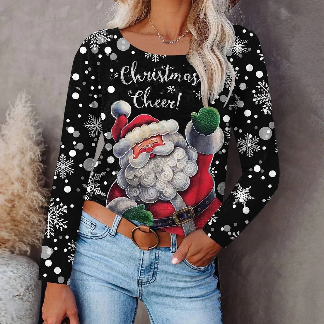 Отзывы о Осень 2022 элегантные женские Топы с длинным рукавом яркая Рождественская