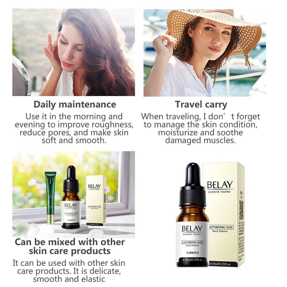 ▶Лактобионная кислота-это плодовая кислота третьего поколения, и команда белэй прошла множество испытаний и корректировок. Молекулярная масса фруктовой кислоты увеличивается, так что лактобионная кислота может затянуть поры, уменьшая дискомфорт для кожи.
