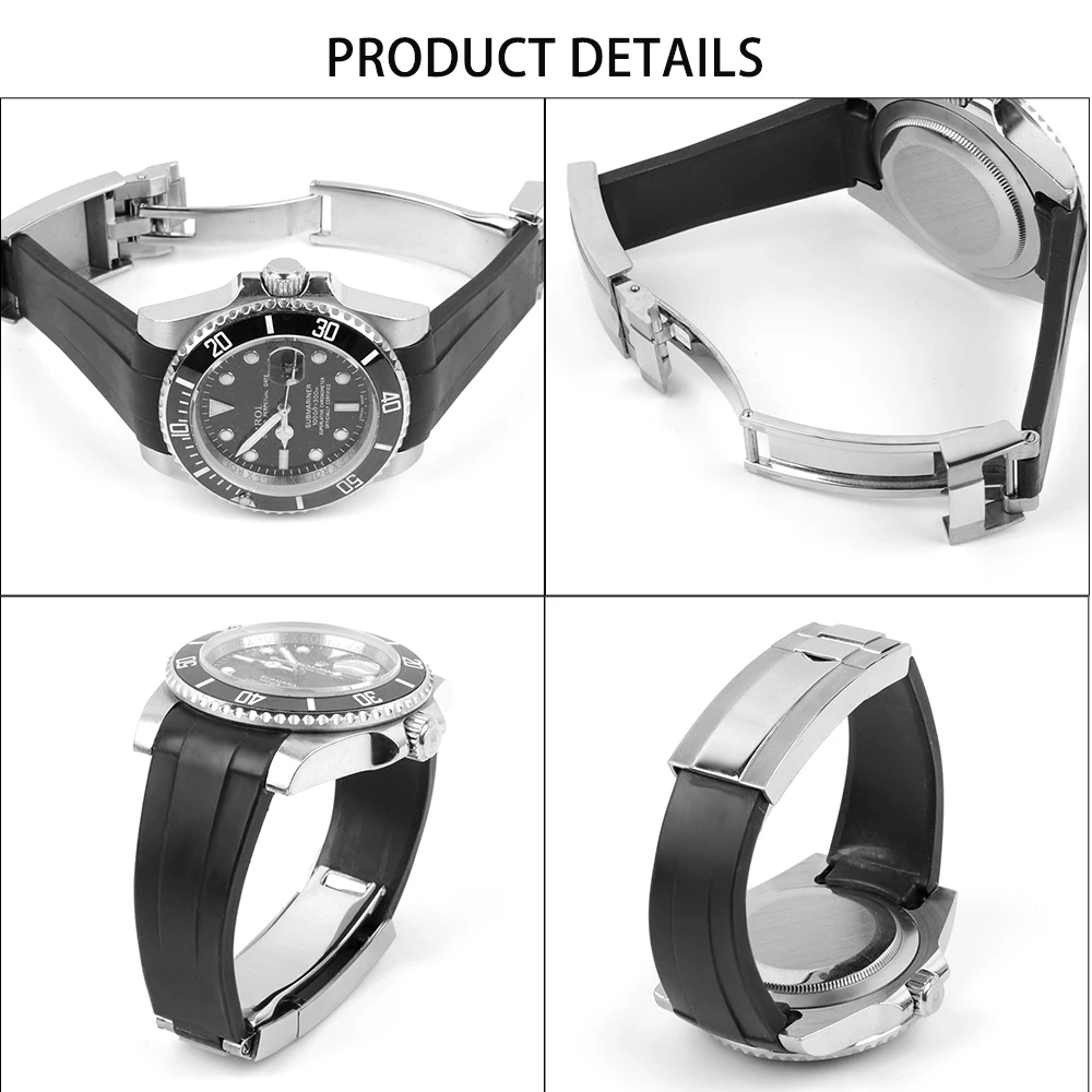 Изогнутый конец 20 мм резиновый ремешок для наручных часов для Rolex подводников: GMT Master 2 Yacht Master Explorer Milgauss Daytona Air-King ремешок для часов