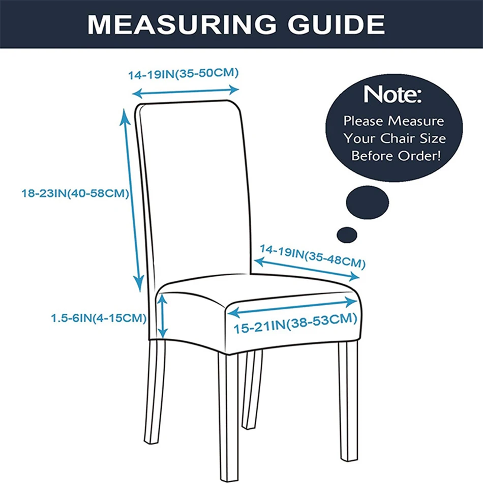 Растягивающиеся чехлы для стульев подходят для обычной и высокой задней столовой и кухонных стульев. Пожалуйста, измерьте свои стулья перед заказом, чтобы обеспечить наилучшую посадку.