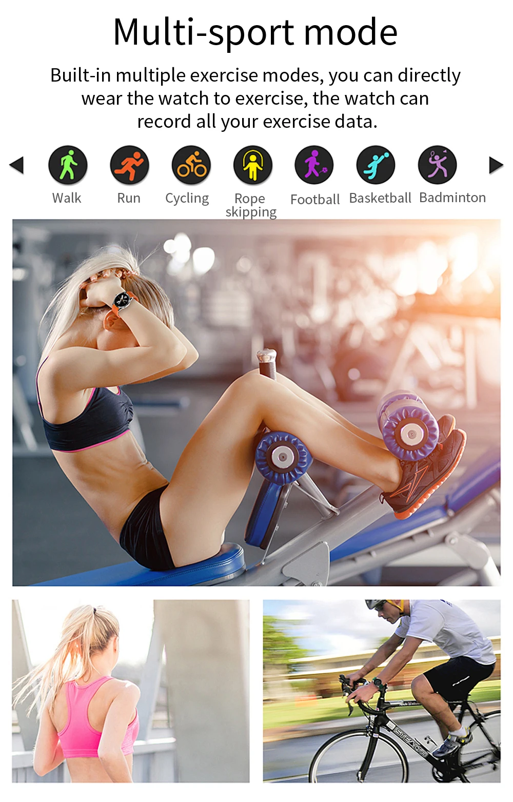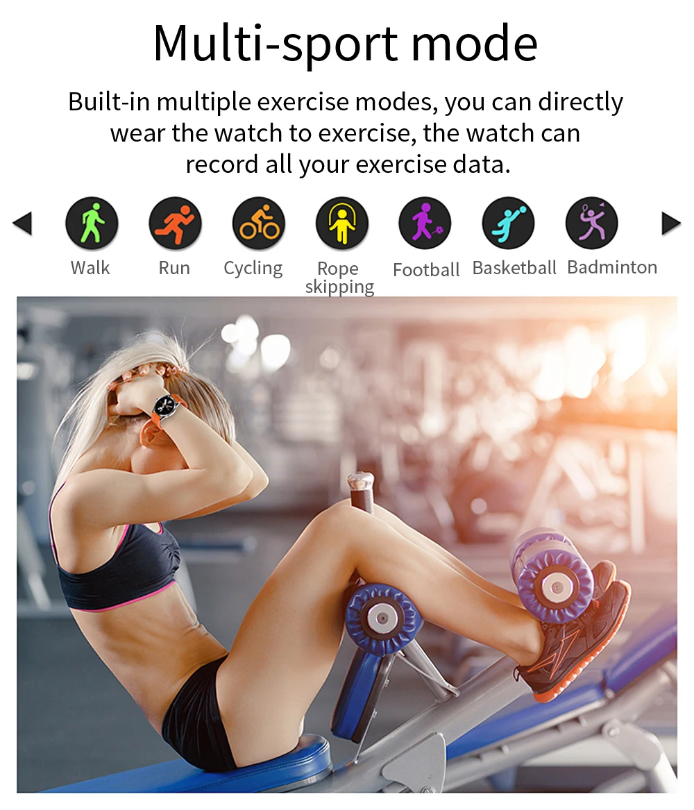 Встроенный в несколько режимов упражнений, вы можете непосредственно носить часы для упражнений, часы могут записывать все ваши данные упражнений.