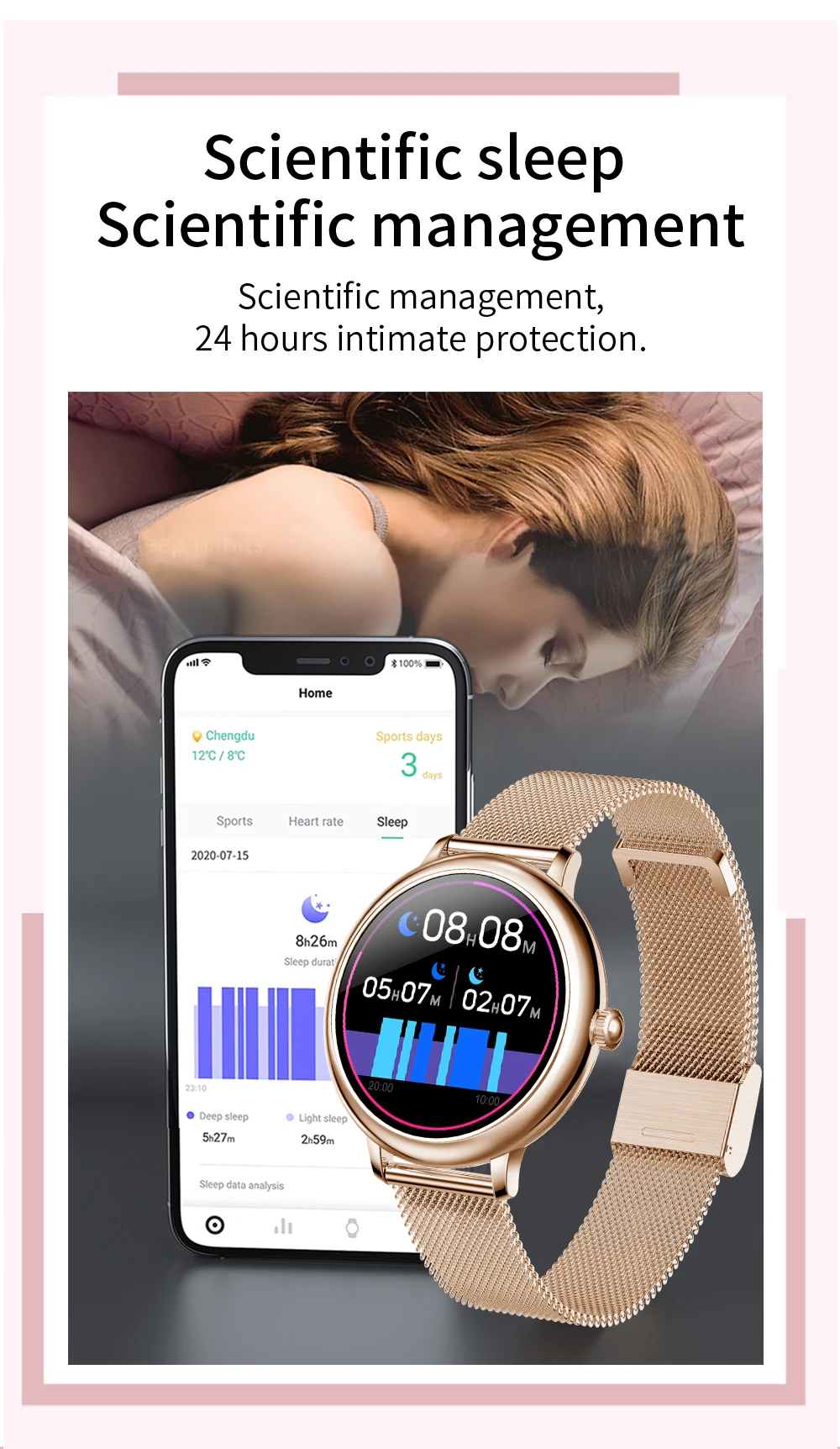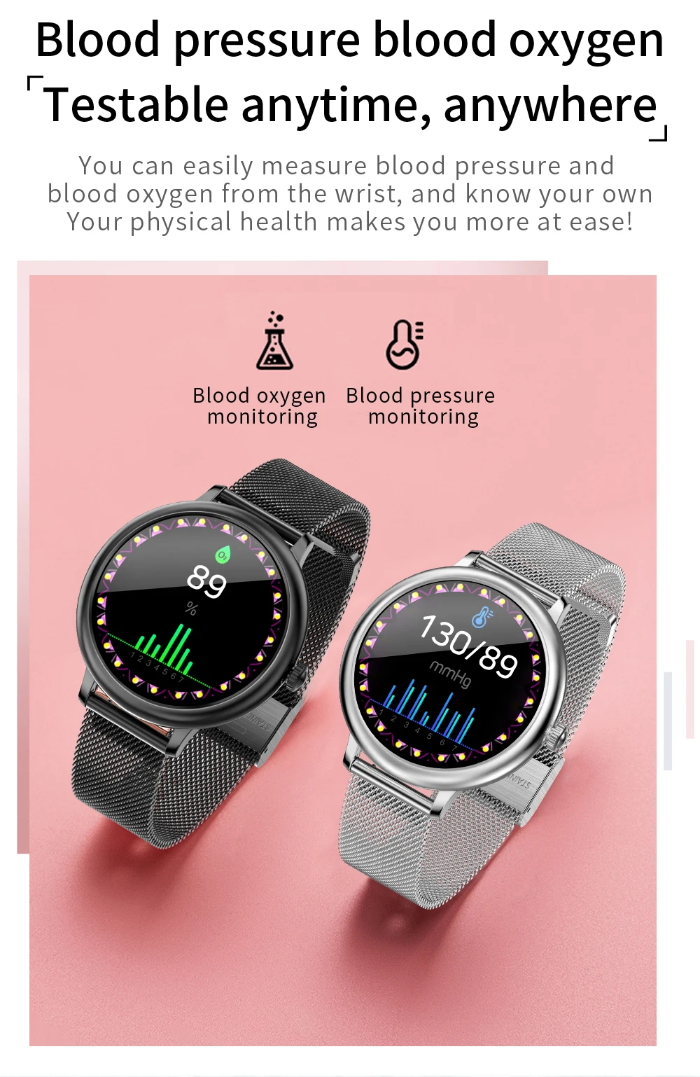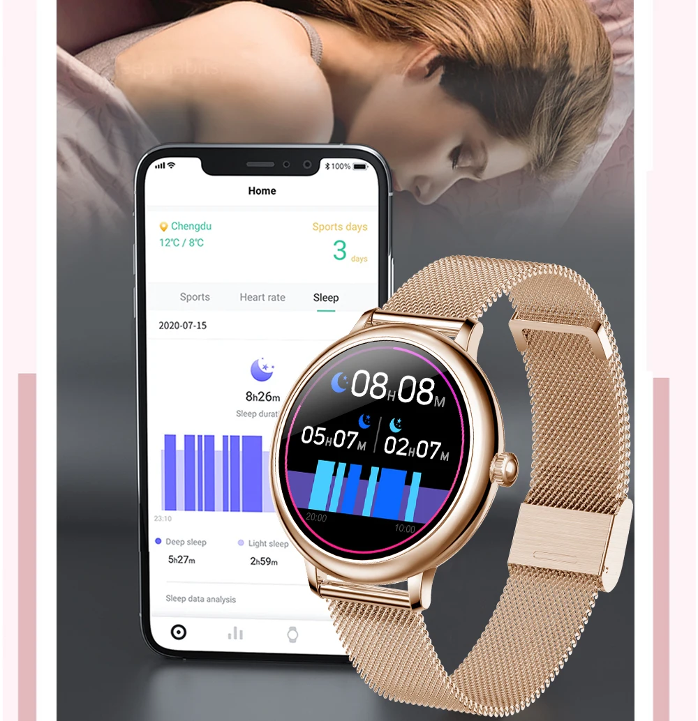 Интеграция новых высокотехнологичных технологий измерения, мониторинг через часы в любое время и в любом месте, когда частота сердечных сокращений превышает 160 ударов в минуту или менее 40 ударов в минуту, вы должны быть оповещены о том, что ваше тело посылает дискомфорт.