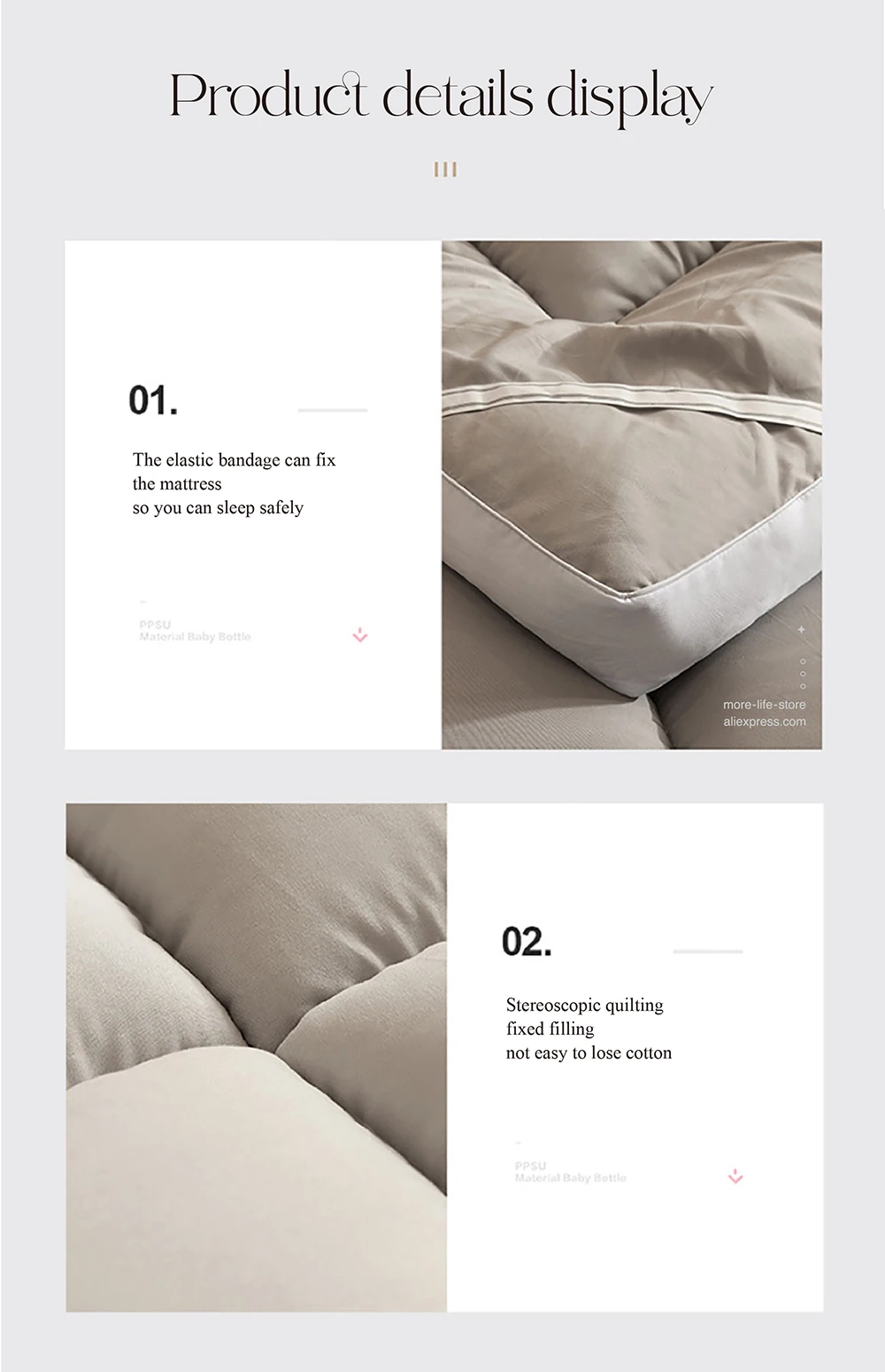 2. Наши продукты являются мягкими матрасами, и после сжатия толщины упаковки будет погрешность в 1-2 см, что не повлияет на более позднее использование.