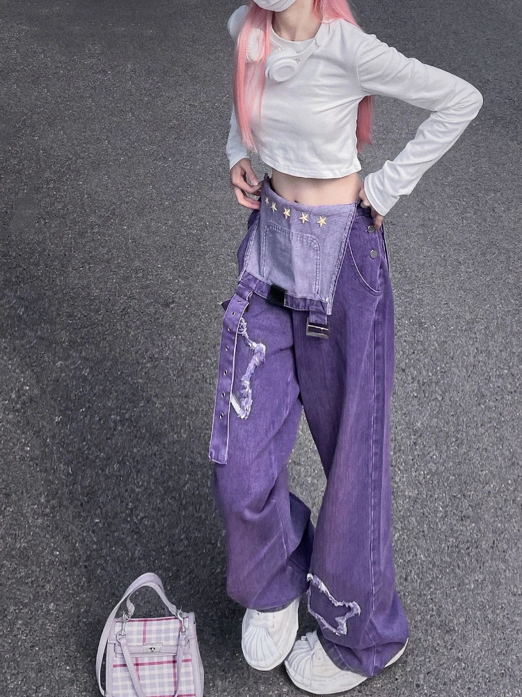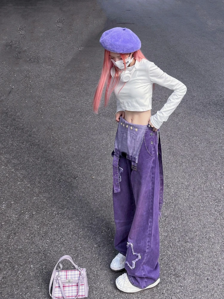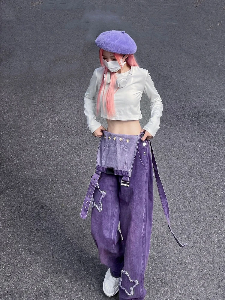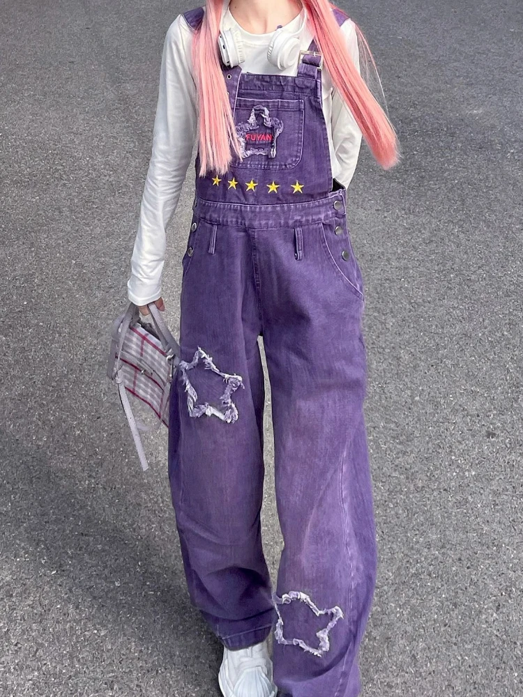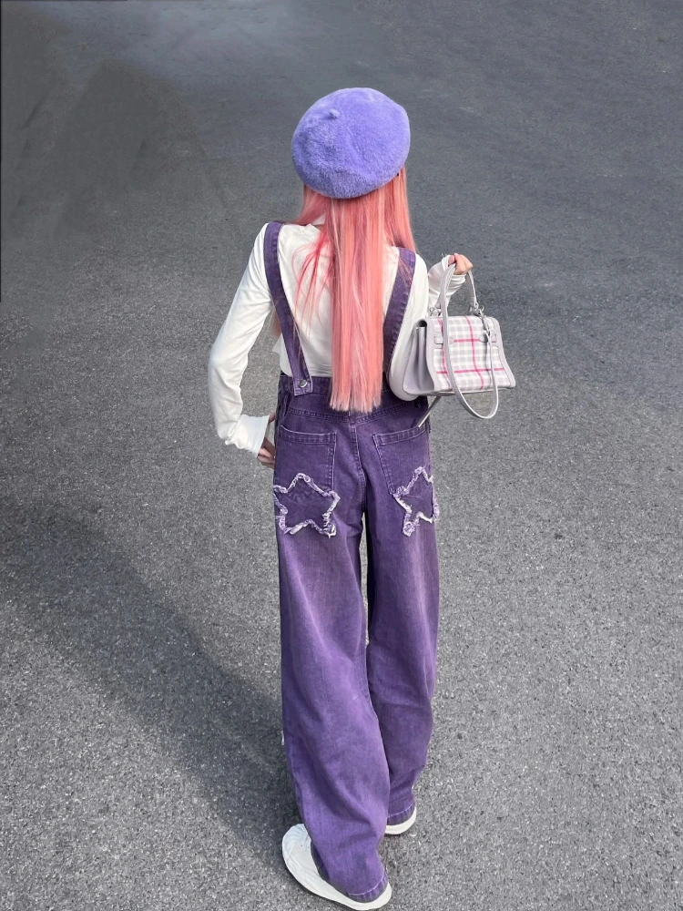 Отзывы о Женский джинсовый комбинезон koshiki винтажный Фиолетовый с широкими штанинами в