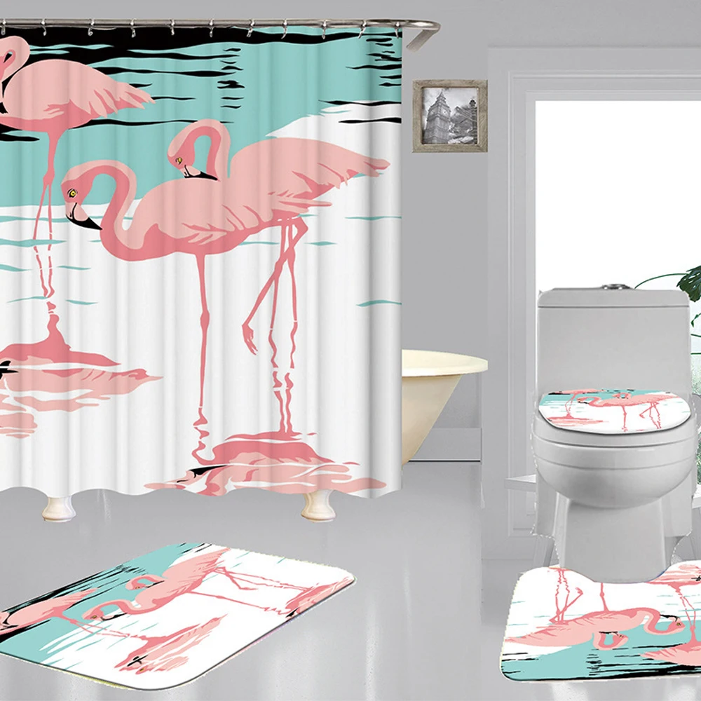 Полный комплект (коврик на пьедестал + крышка для унитаза + коврик для ванной + занавеска для душа)