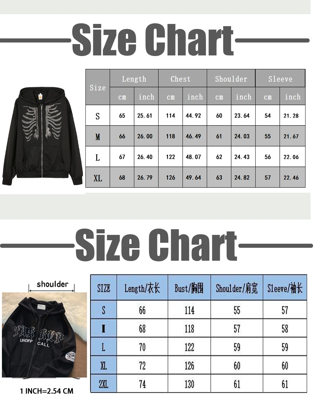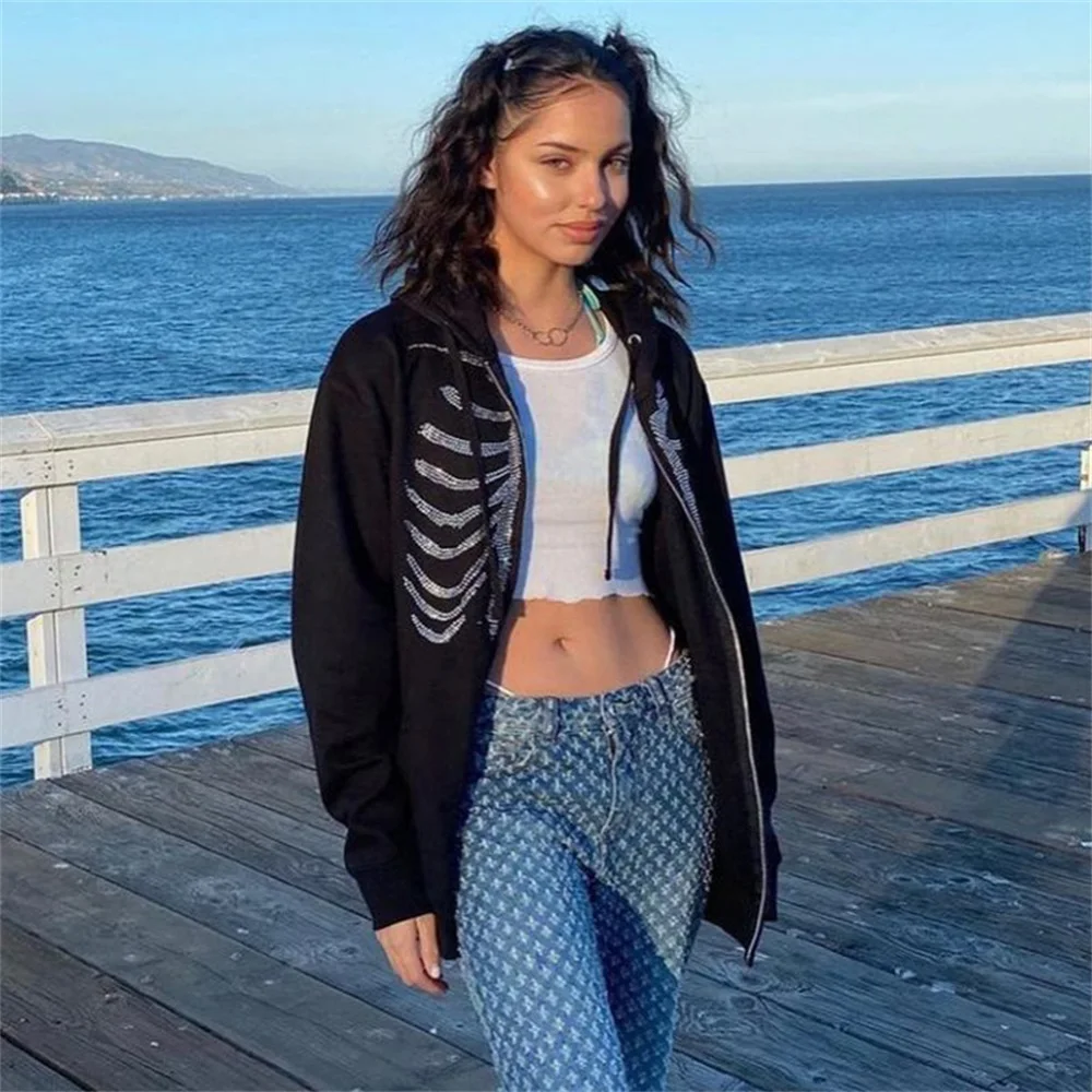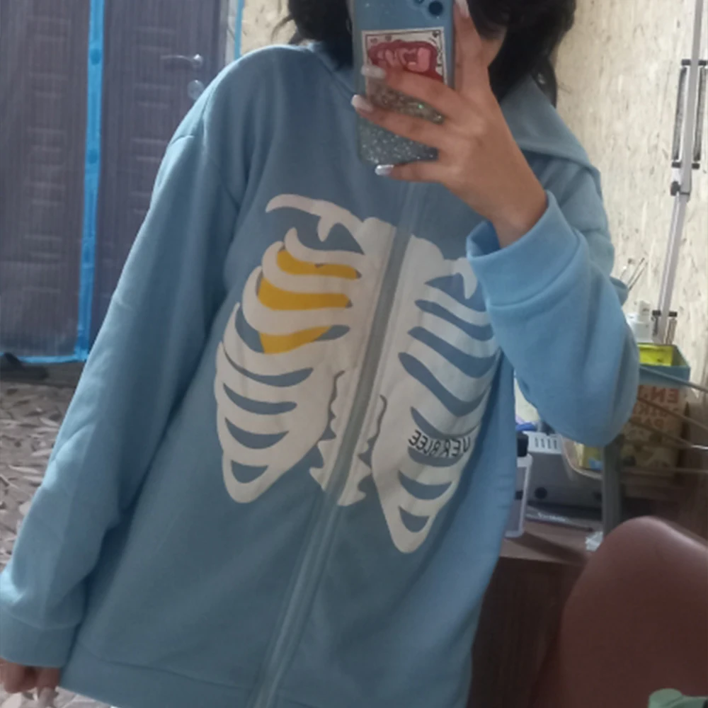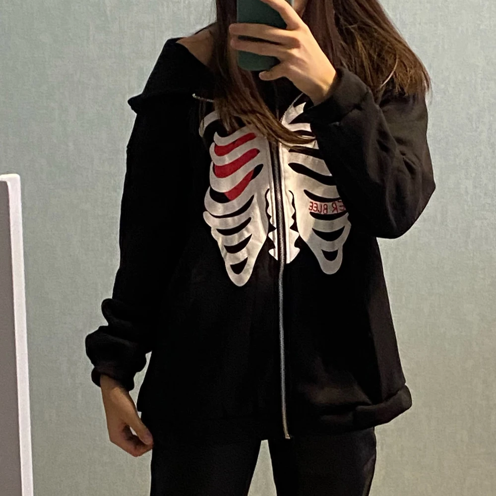 Отзывы о Y2K куртки худи Скелет женские черные толстовки на молнии свободные ретро Harajuku
