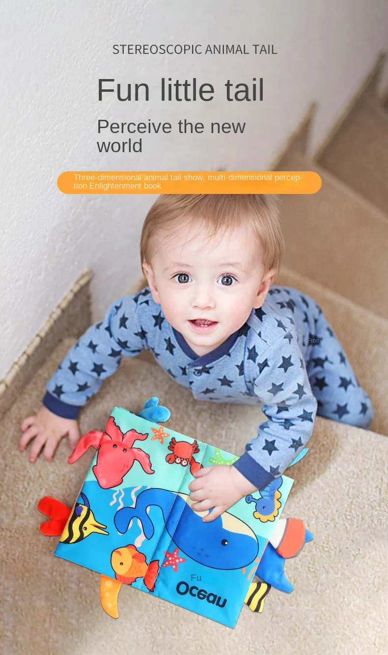 ❤Монтессори детские животные хвост книга из ткани, игрушки 0 6 12 18 месяцев