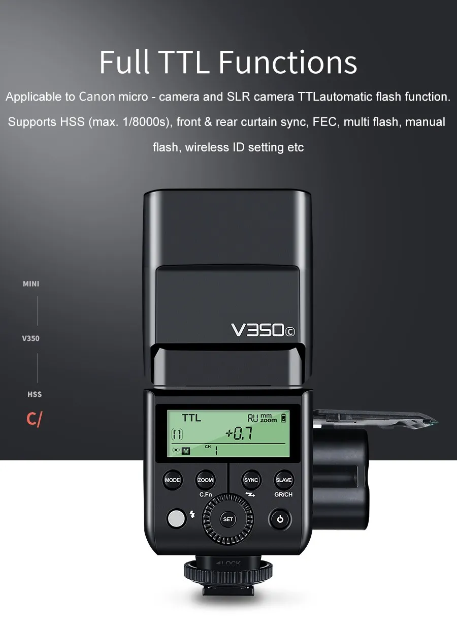 Отзывы о Вспышка для камеры Godox V350C V350N V350S V350F V350O TTL HSS со встроенным литиевым аккумулятором