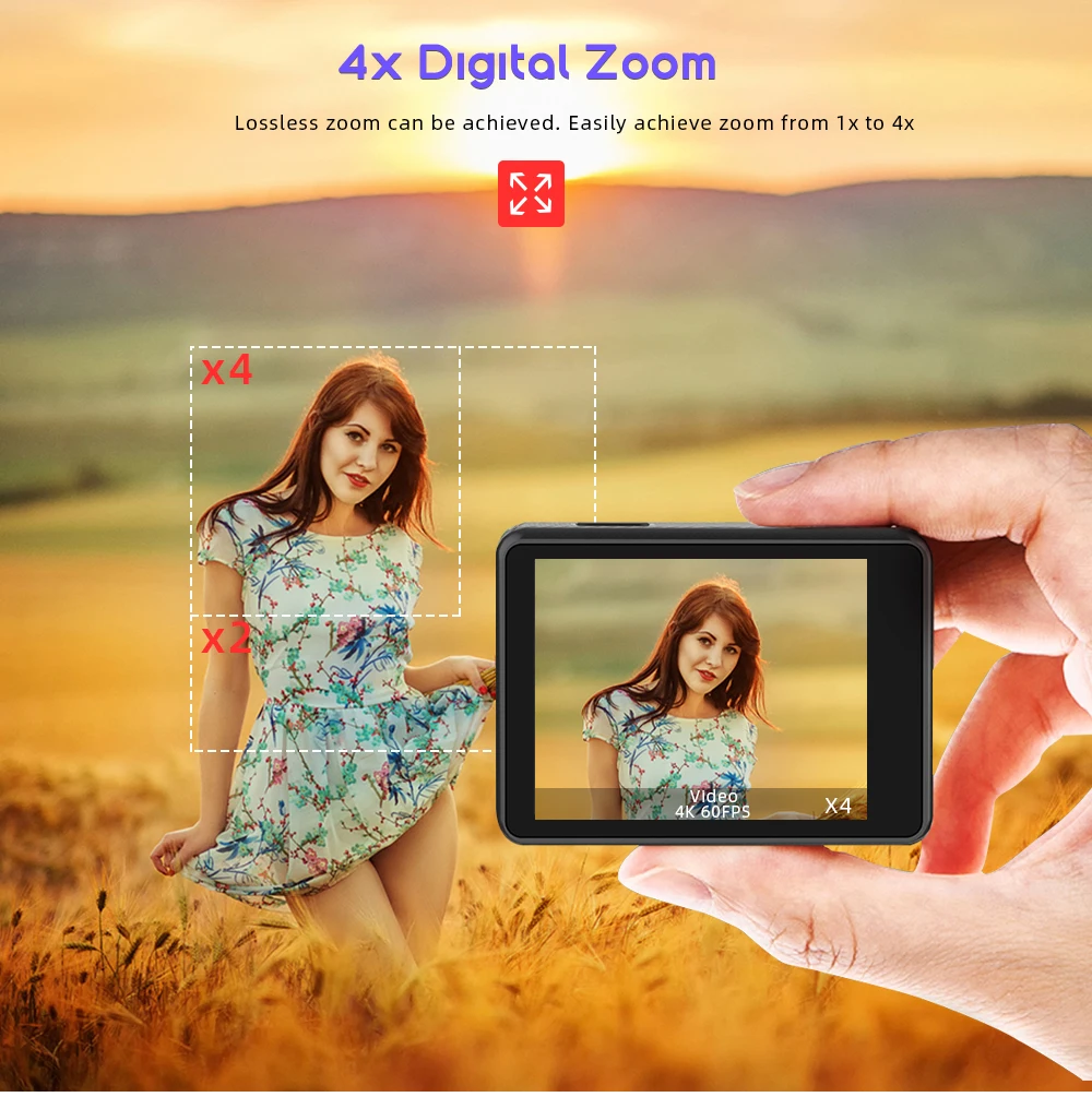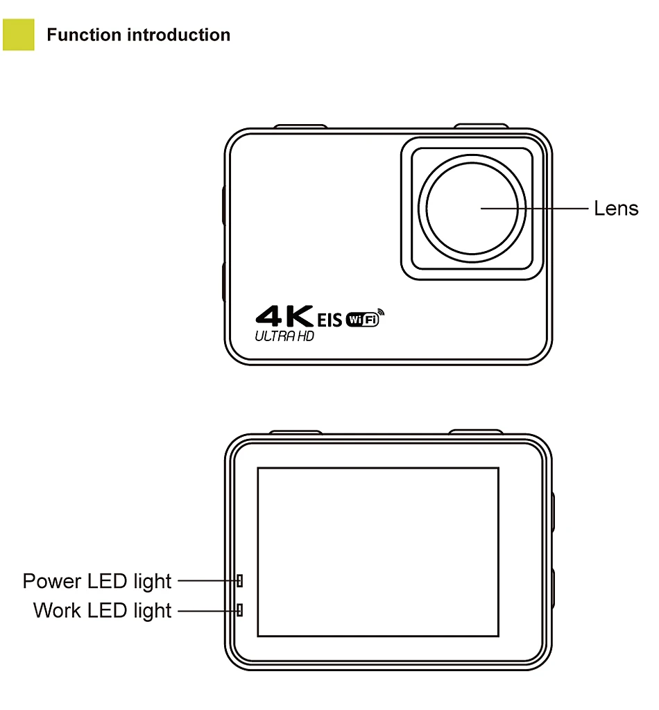 ● 2 "HD LCD ● Ultra HD 4K/60 кадров в секунду ● глубина погружения 30 м ● аккумулятор 900ma ● 24,0 мегапикселя ● Многоязычная работа ● 170 широкоугольный объектив ● wifi функция ● EIS
