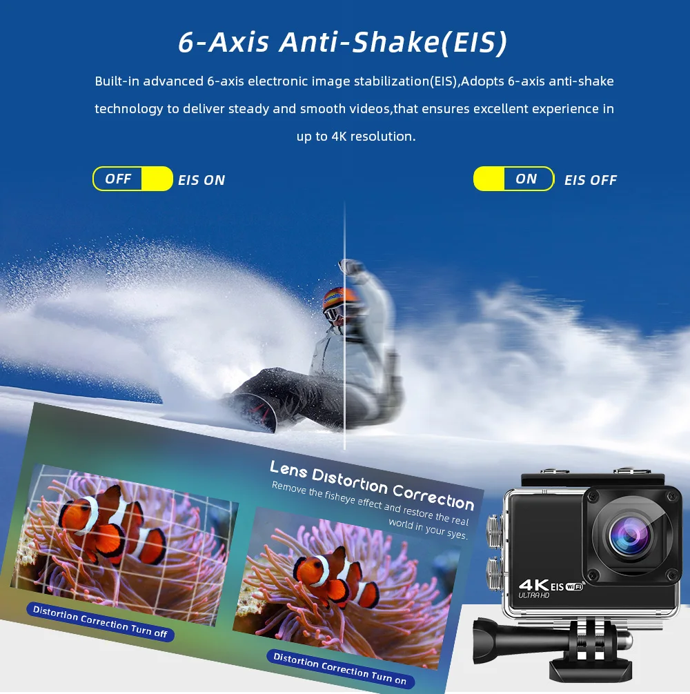 ● Встроенный передовые 6-осевой электронная стабилизация изображения (EIS), принимает 6-осевой Противоударная технологии для того, чтобы создать устойчивый и слаженное видео, это обеспечивает превосходный опыт в разрешении до 4K.