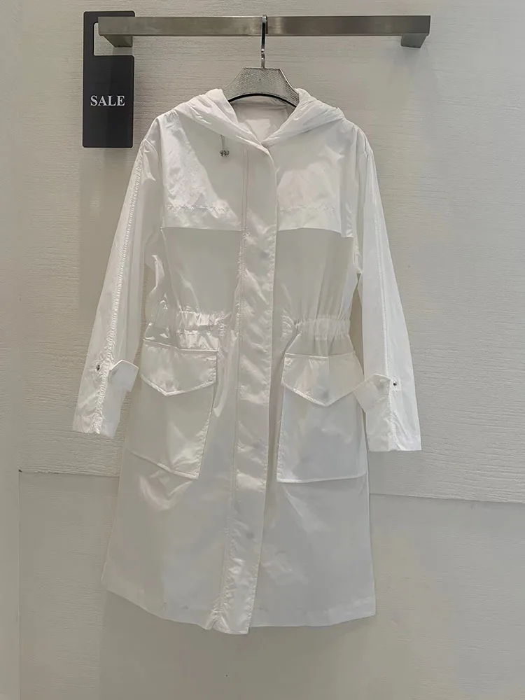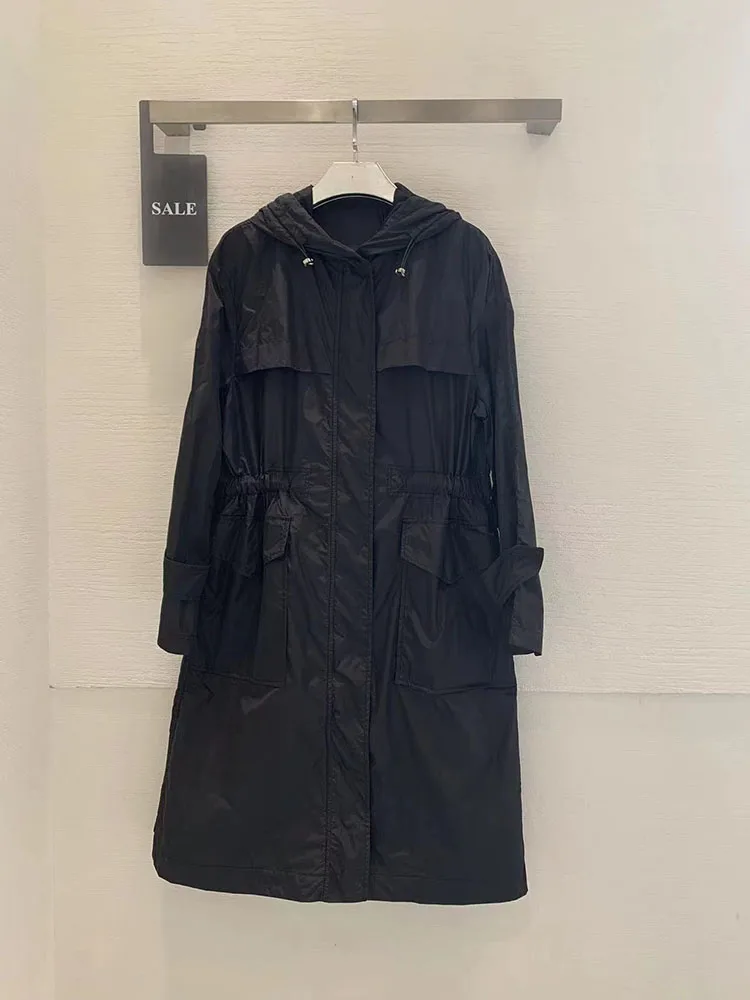 Отзывы о Женский Длинный свободный Тренч повседневный однотонный тонкий с капюшоном и