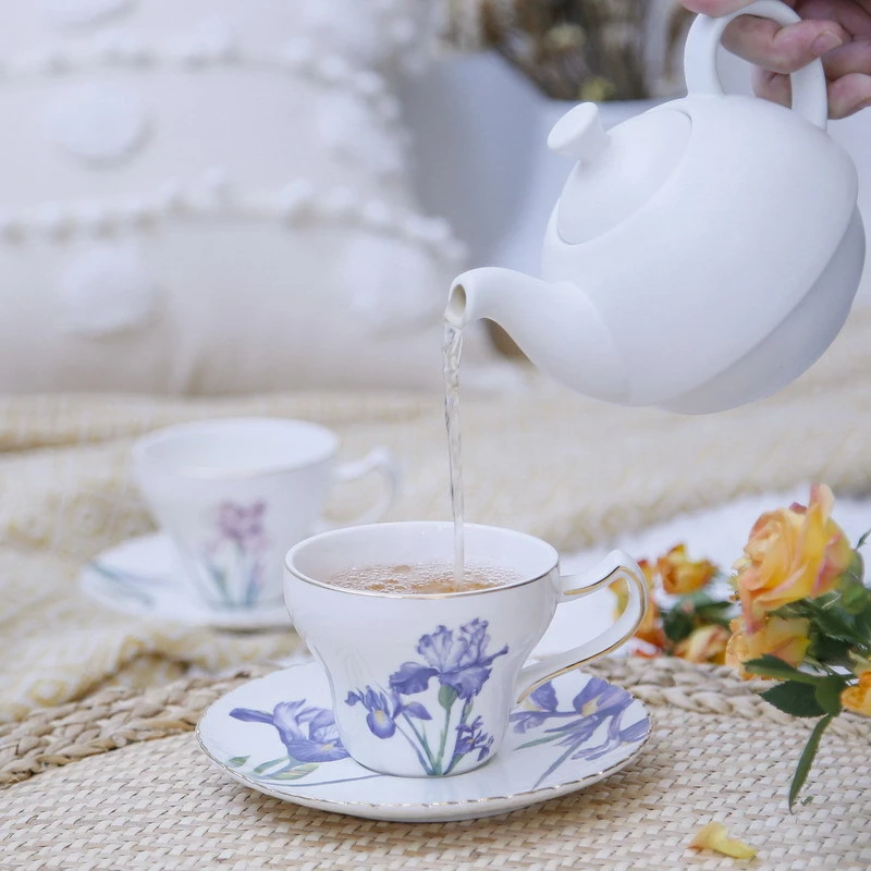 Ирис печатная чашка блюдце Европейская керамическая Кофейная Кружка горшок домашний элегантный чайный набор оригинальные чашки для завтрака Подарочная коробка набор для питья