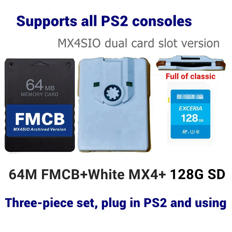 3. Если вы приобретаете специальную карту FMCB, наша карта FMCB может использоваться на всех консолях PS2, полных и худых. При воспроизведении адаптера MX4SIO также поддерживается хранение файлов.