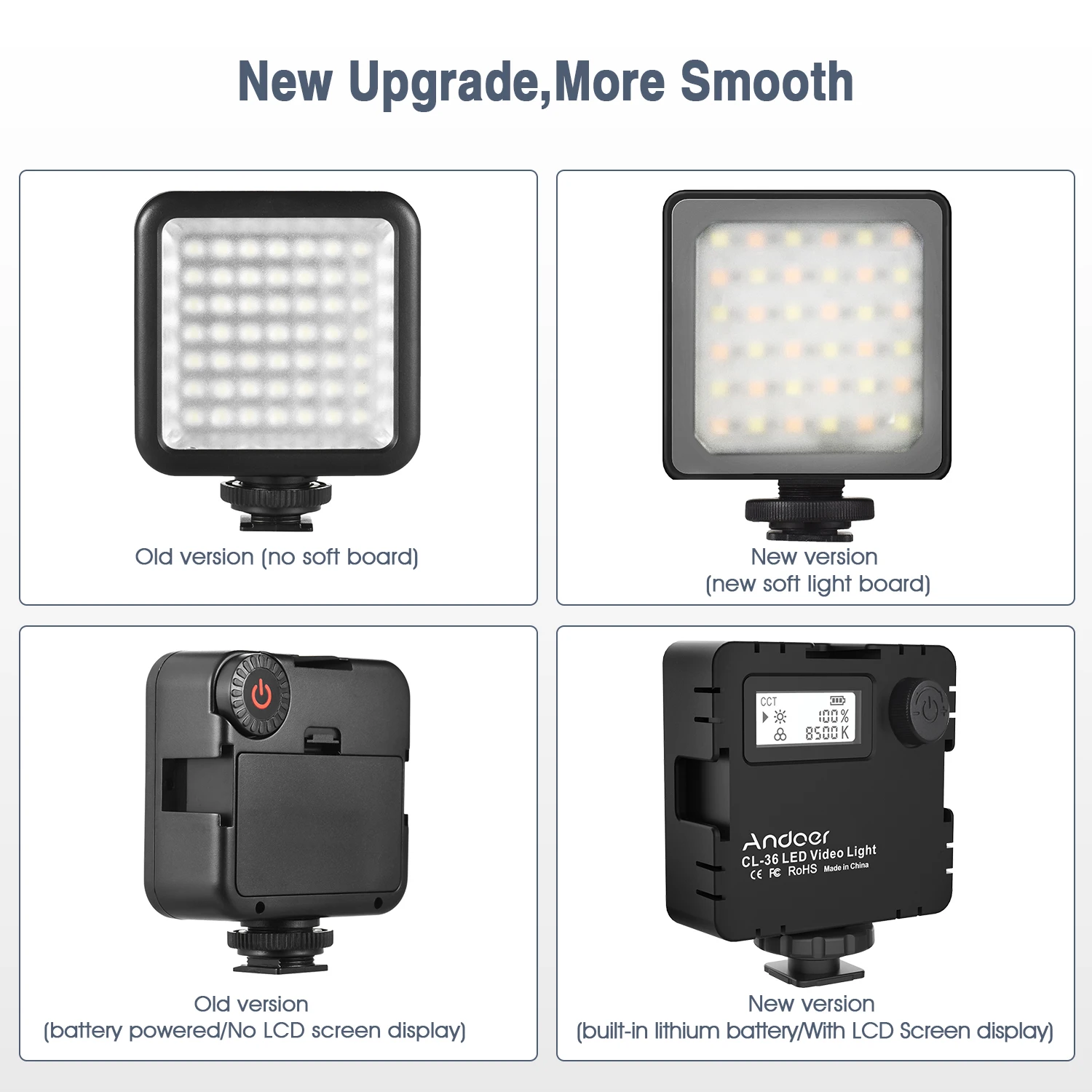 Более яркий и мягкий светильник:Этот мини-светодиодный видео светильник с обновлением мягкий светильник платы на основе старой модели, предоставляет вам мягче и ярче дополнение светильник, не слепит, идеально подходит для видео для видеосъемки или фотографии.