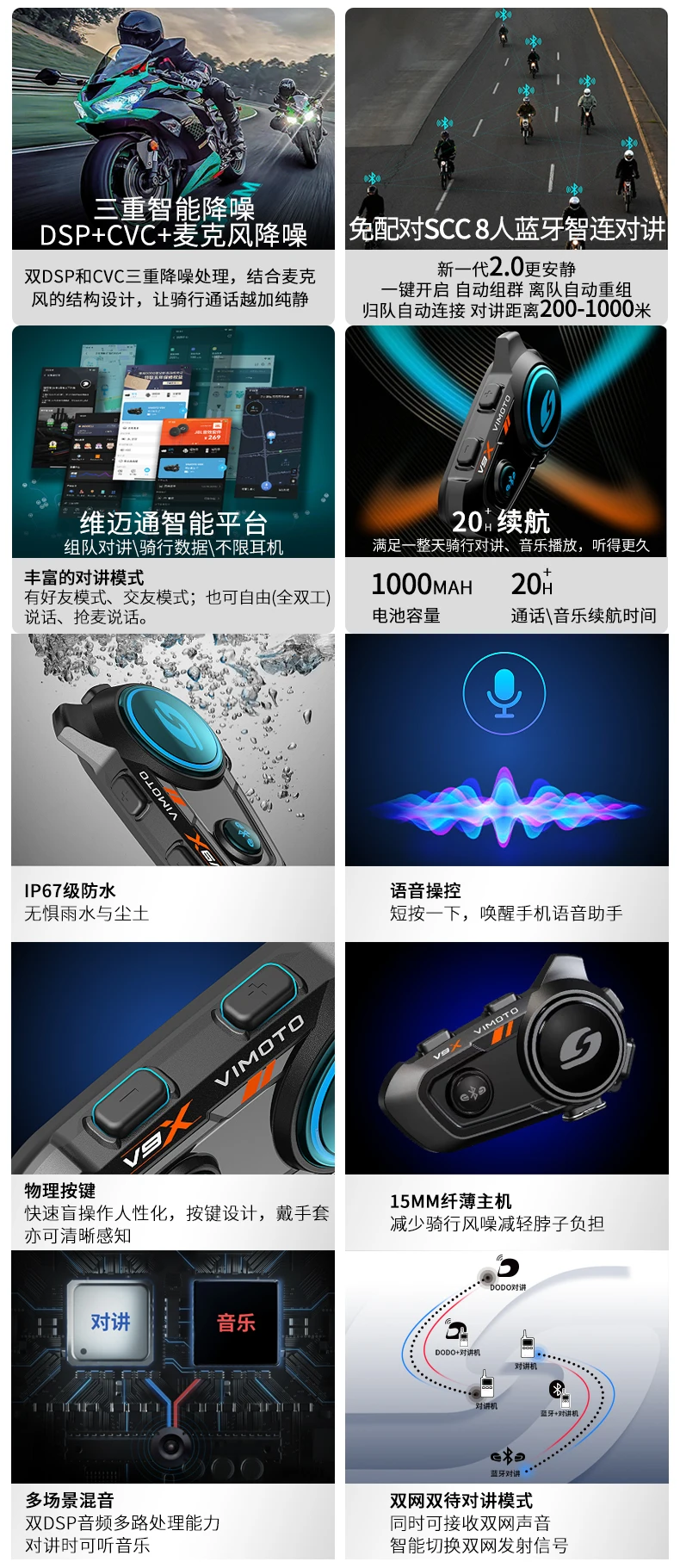 Отзывы о Мотоциклетная Bluetooth-гарнитура Vimoto V9X водонепроницаемая мотогарнитура для шлема 8