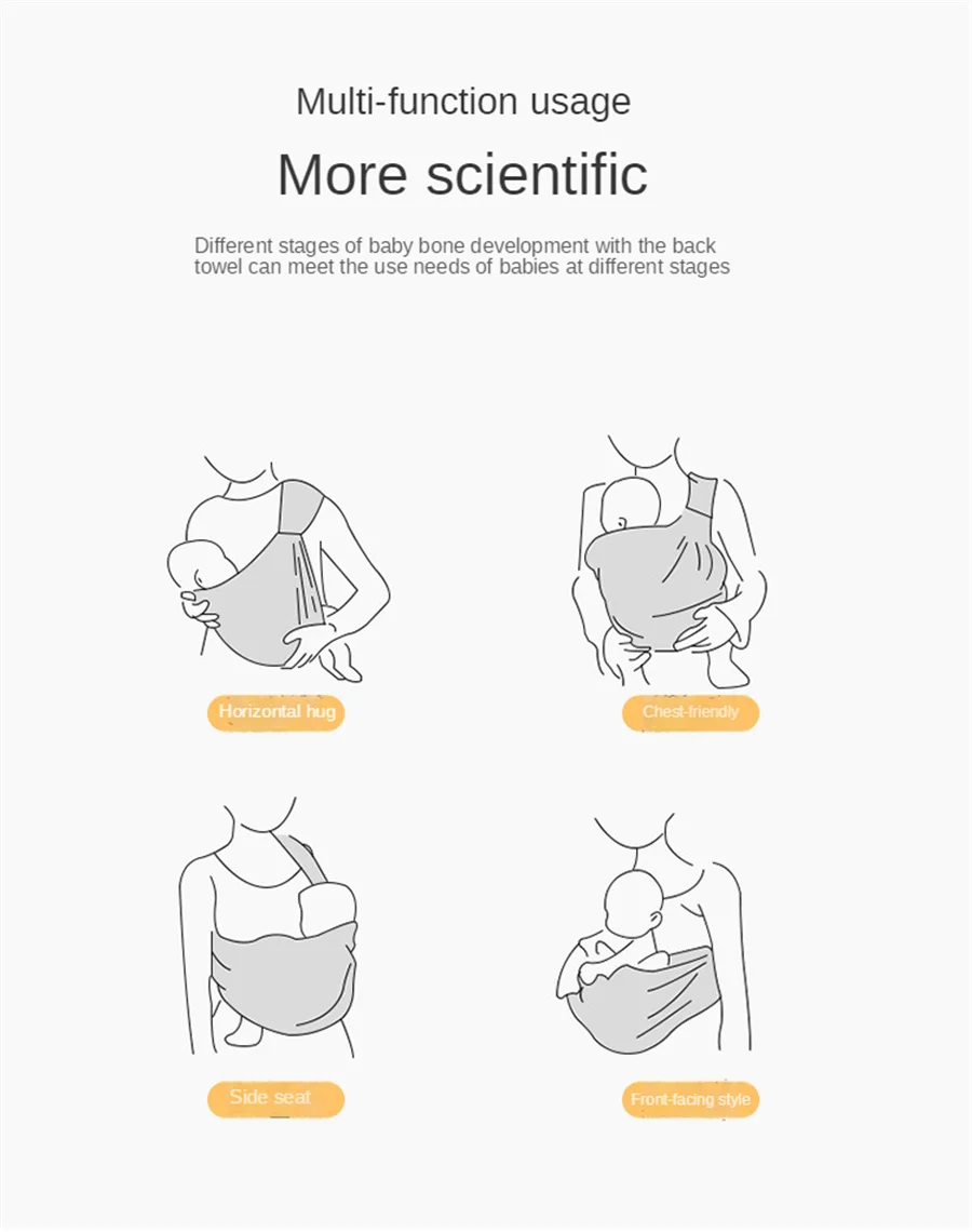 Для вас и вашего ребенка: Наша обертка для переноски предлагает бесплатную поддержку родителям и удобную безопасность для детей. Он сочетает в себе близость детской обертки и легкость переноски ребенка. Наша упаковка проста, безопасна и очень удобна.