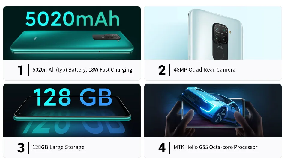 3G: WCDMA:B1 / B2 / B5 / B84G: FDD-LTE :B1 / B3 / B5 / B7 / B8TDD-LTE:B34 / B38 / B39 / B40 / B41(2555-2675 МГц)REDMI NOTE 9Восьмиядерный процессор MTK Helio G85 | 6,53 "FHD + DotDisplay | 48MP Quad Camera | Аккумулятор 5020 мАч