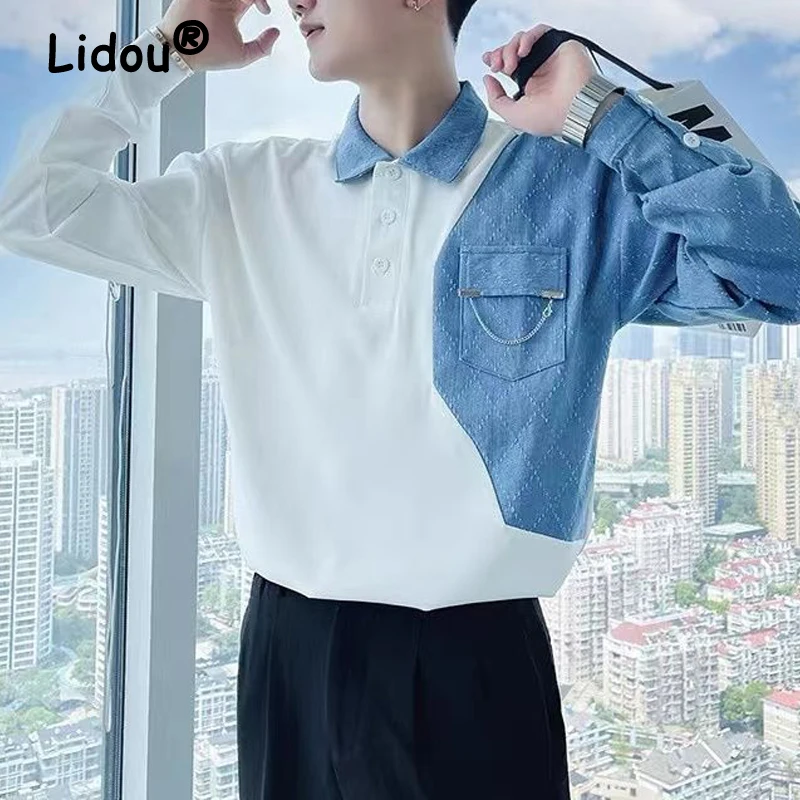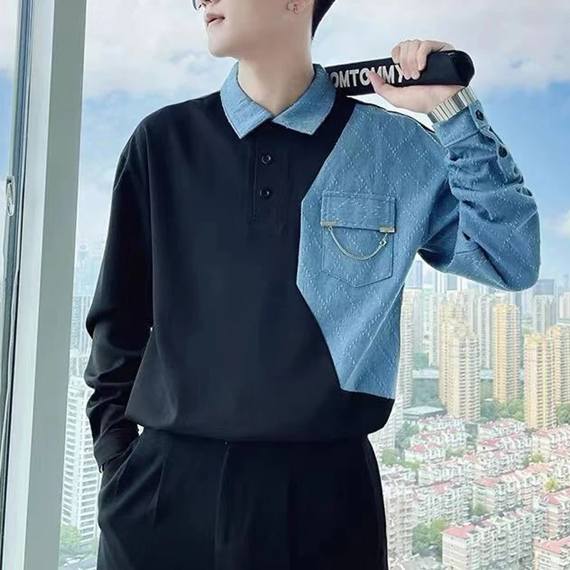 Отзывы о Футболка-поло мужская составного кроя модный универсальный Топ с длинным