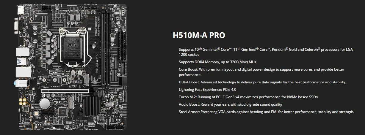 Отзывы о Материнская плата MSI H510M-A PRO с LGA 1200 использует чип Intel H510 поддерживает процессор