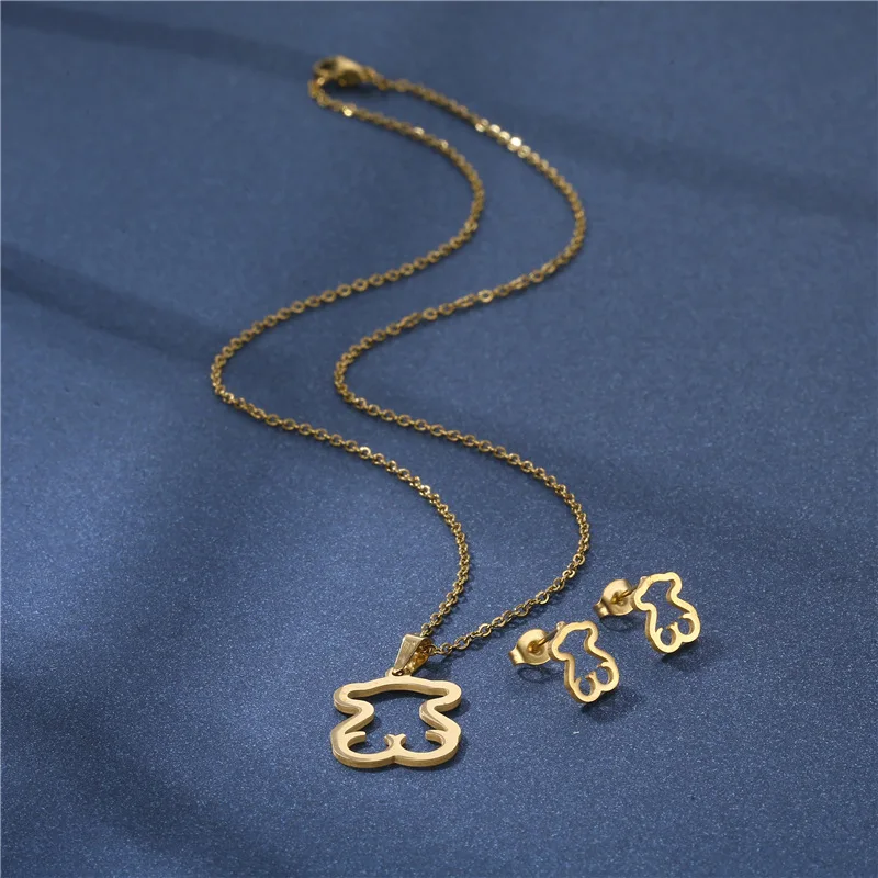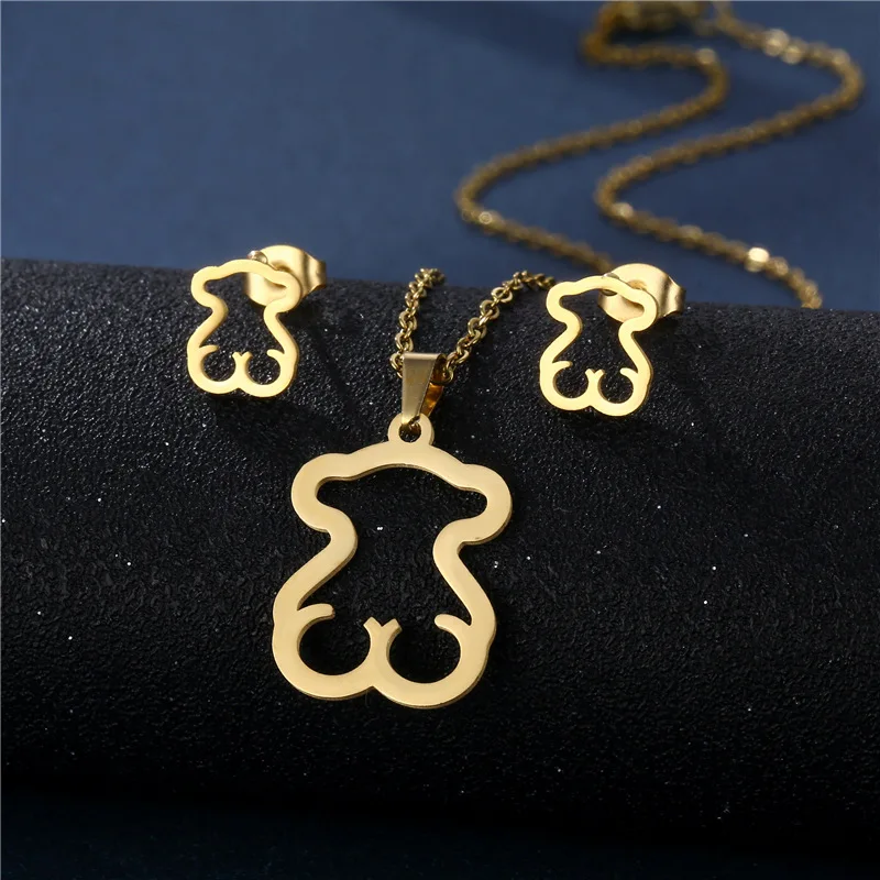 Отзывы о Золотые/серебряные серьги из нержавеющей стали в виде медведя ожерелье