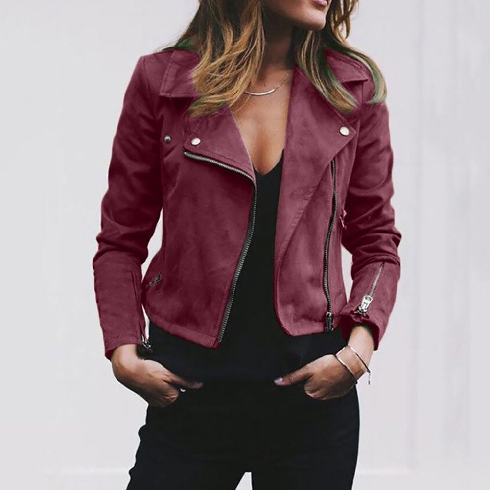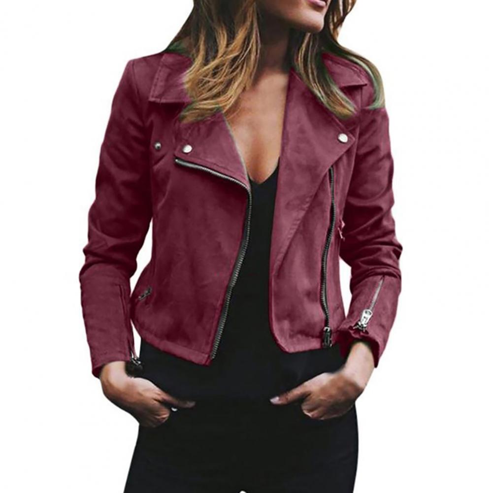 Женская байкерская куртка размера плюс, однотонная короткая куртка с отворотом и длинным рукавом на молнии