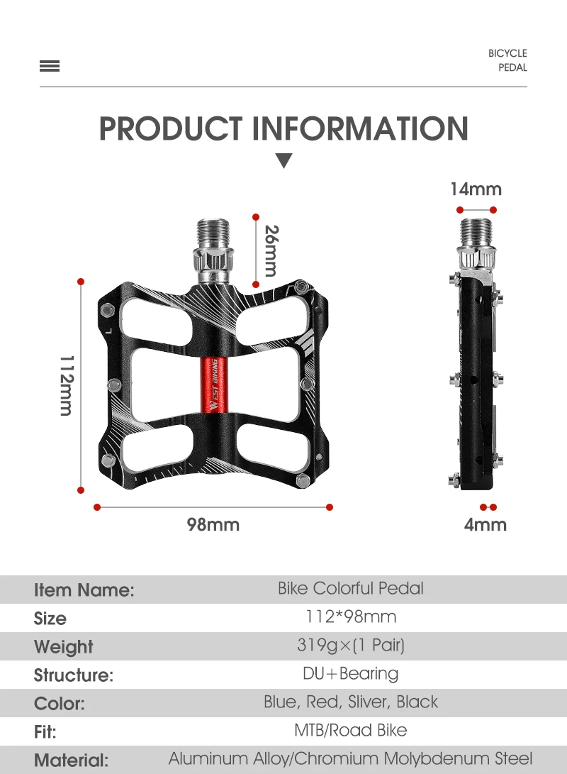 Отзывы о WEST BIKING сверхлегкие велосипедные педали с 3 подшипниками расширенные из