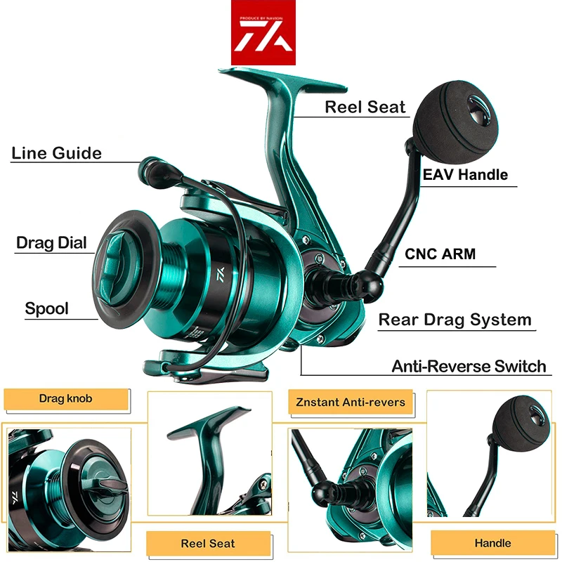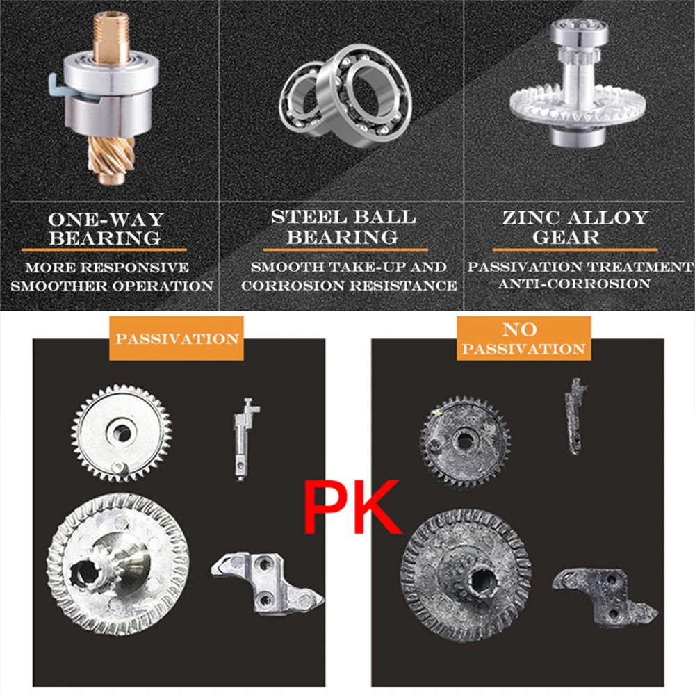 + Стальной шариковый подшипник/Шестерня из цинкового сплава/Полностью герметичная коробка передач, не легко ржавеет (устойчивая к коррозии, подходит для рыбалки в соленой и пресной воде)