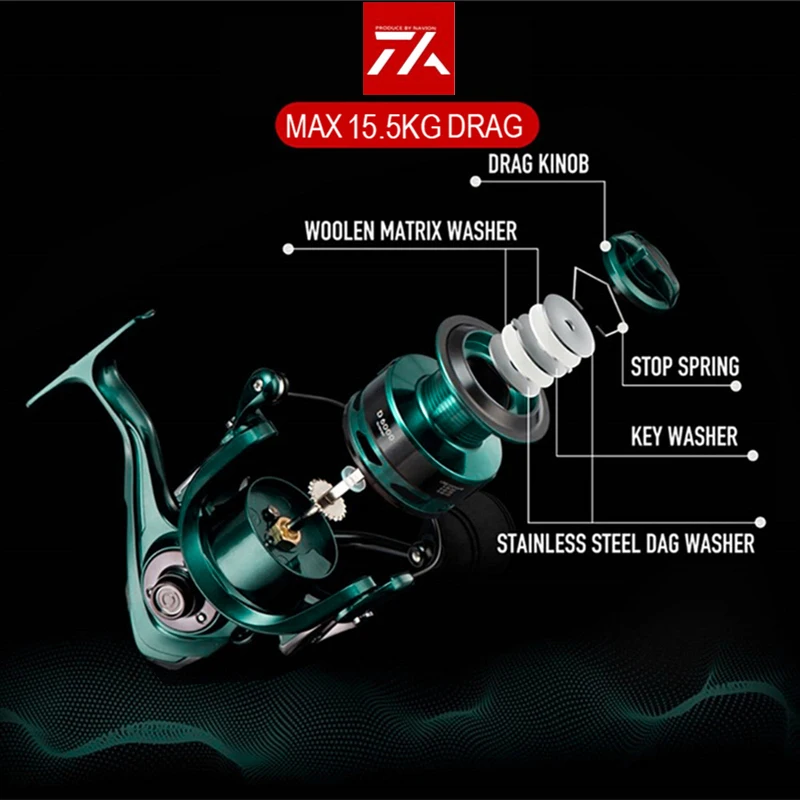 + Двойная катушка мелкая и скошенная (катушка из алюминиевого сплава + пластиковая катушка) подходит для долгой Литой катушки, высокая прочность без деформации
